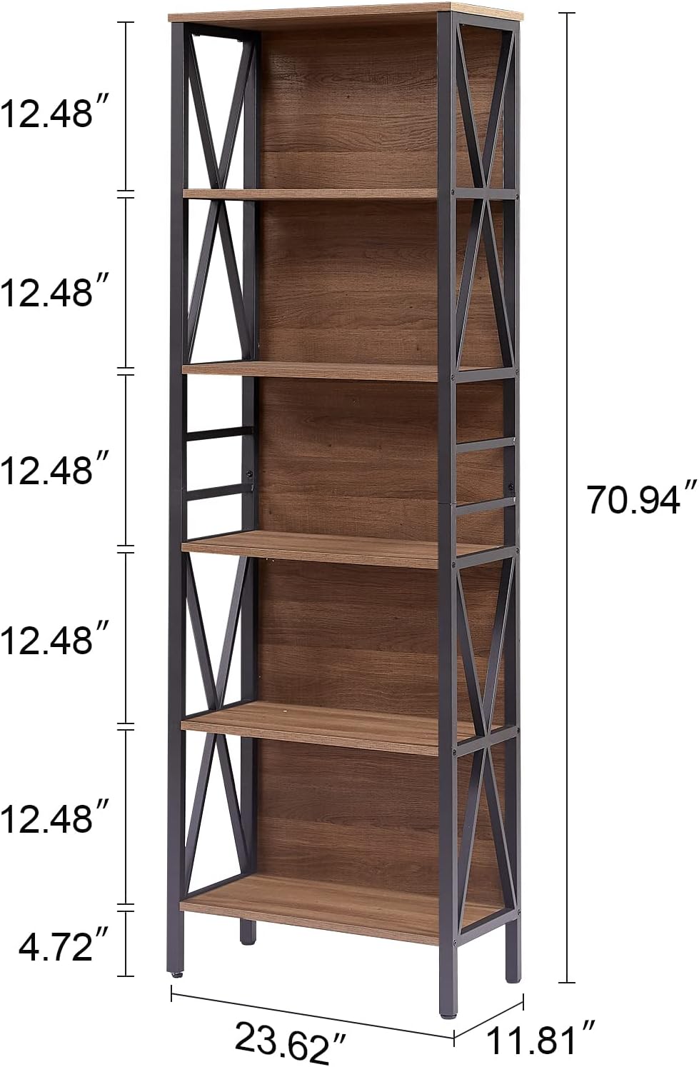 - [Multifunctional Bookshelf]: The unique side design of this home bookcase is combined with vintage wood grain to adapt to different styles of furniture.The simple upright and open book shelf can help you to save more indoor space. You can use the modern bookshelf for bedroom, living room, study, office or corner. At the same time, the 6 shelf has a scratch-resistant, impact-resistant, waterproof design, which can protect the surface from daily wear and tear.