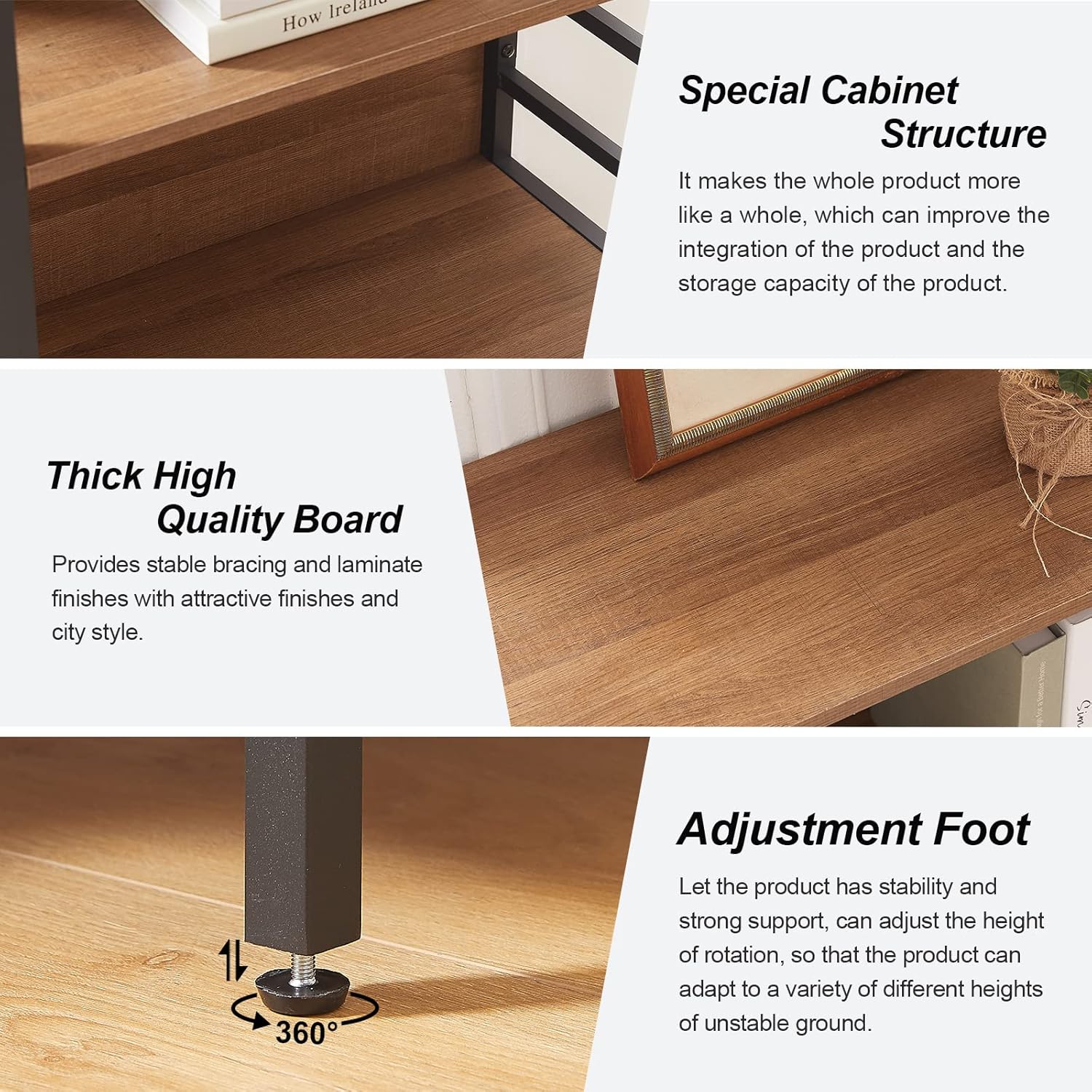 - [Bookshelf With Cabinet Design]:The tall bookcase has a back panel design than the standard open bookcase, which makes the industrial bookshelf more integral. It also allows the freestanding bookshelf to be placed off the wall without worrying about items falling off the back, making it more practical and more aesthetically pleasing.