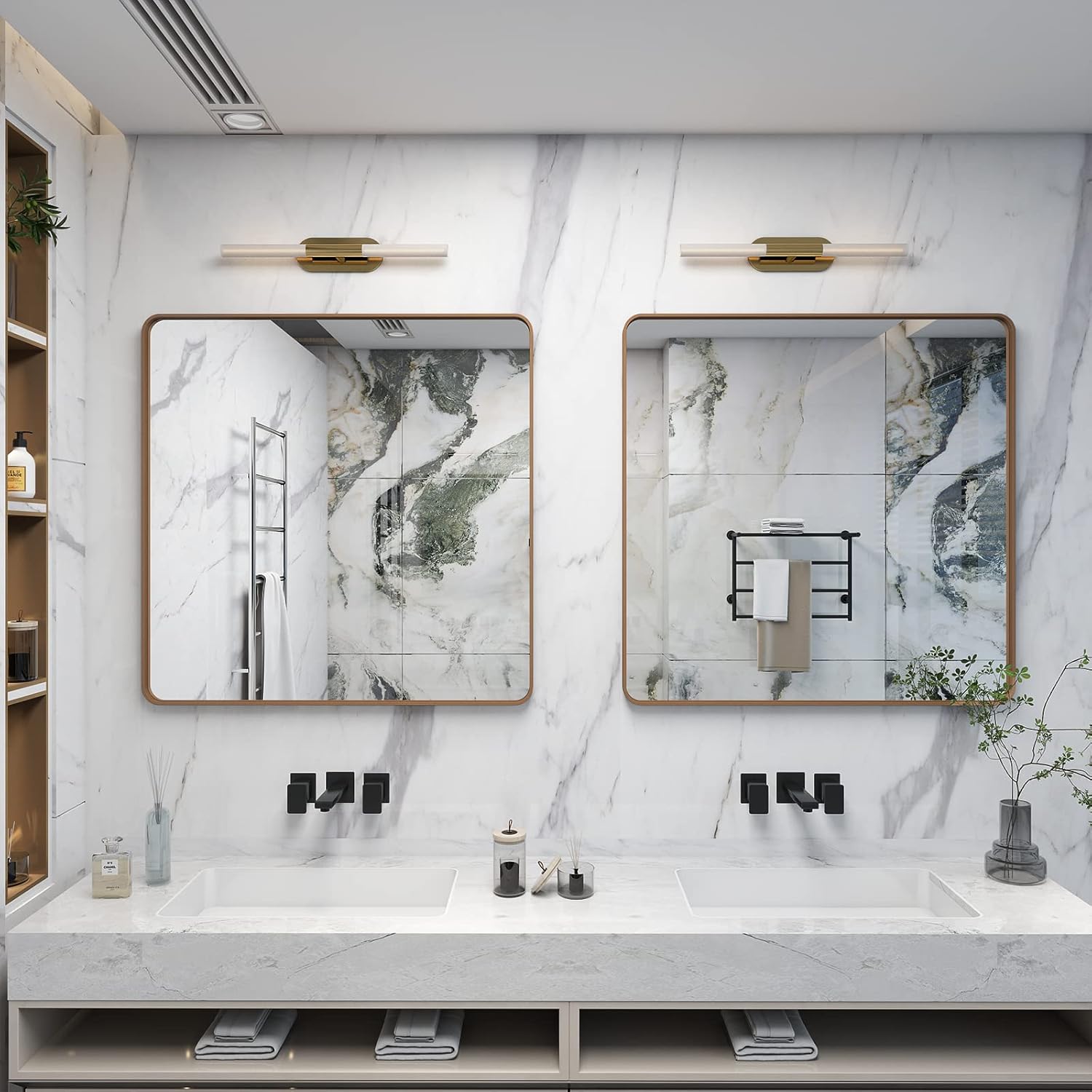 - 【Durable Brushed Gold Frame Mirror】With round corner metal frame, CHARMOR gold bathroom mirror looks elegant and feels smooth. The frame material is premium alumium alloy with brushed texture, which is stylish and more durable. Light weight, good corrosion resistance and wear resistance.