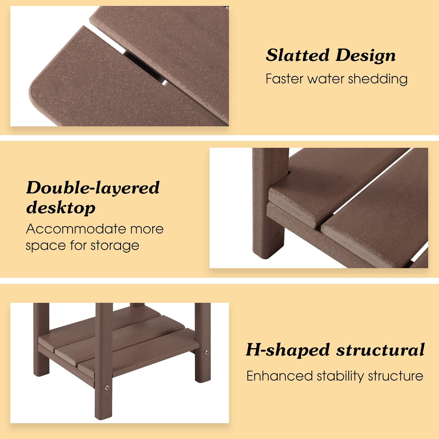 - WEATHER RESISTANT:This side tables are made of the polystyrene material with a textured grain finish and the realistic wood-like look. Apolimi Adiorndack desk will never fade, splinter, crack, chip, peel, or rot when exposed to the elements.