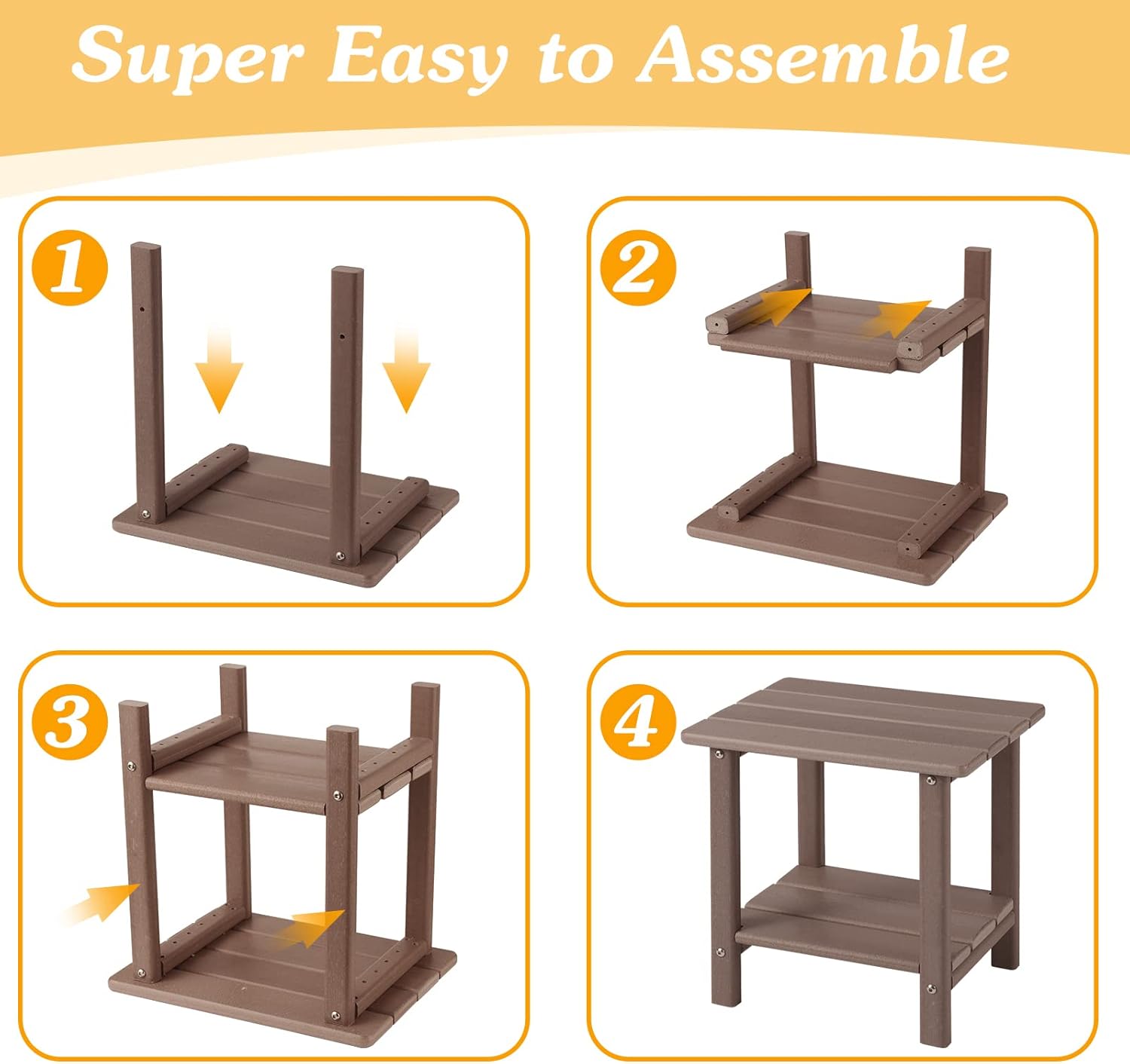 - EASY TO ASSEMBLE:All spare parts needed are included in the parcel, only need to tighten screws to splice parts according to the manual included, this Adirondack side desk only needs a few steps to assemble, about 7-10mins to install with clear directions.