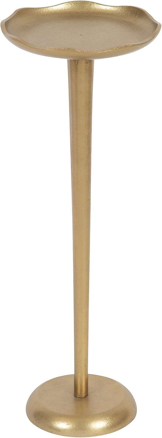Kate and Laurel Alessia Modern Decorative Metal Drink Table; 8 x 8 x 22; Gold; Stunning Cast Aluminum Pedestal Plant Stand with Rough Texture and Deckled Edge