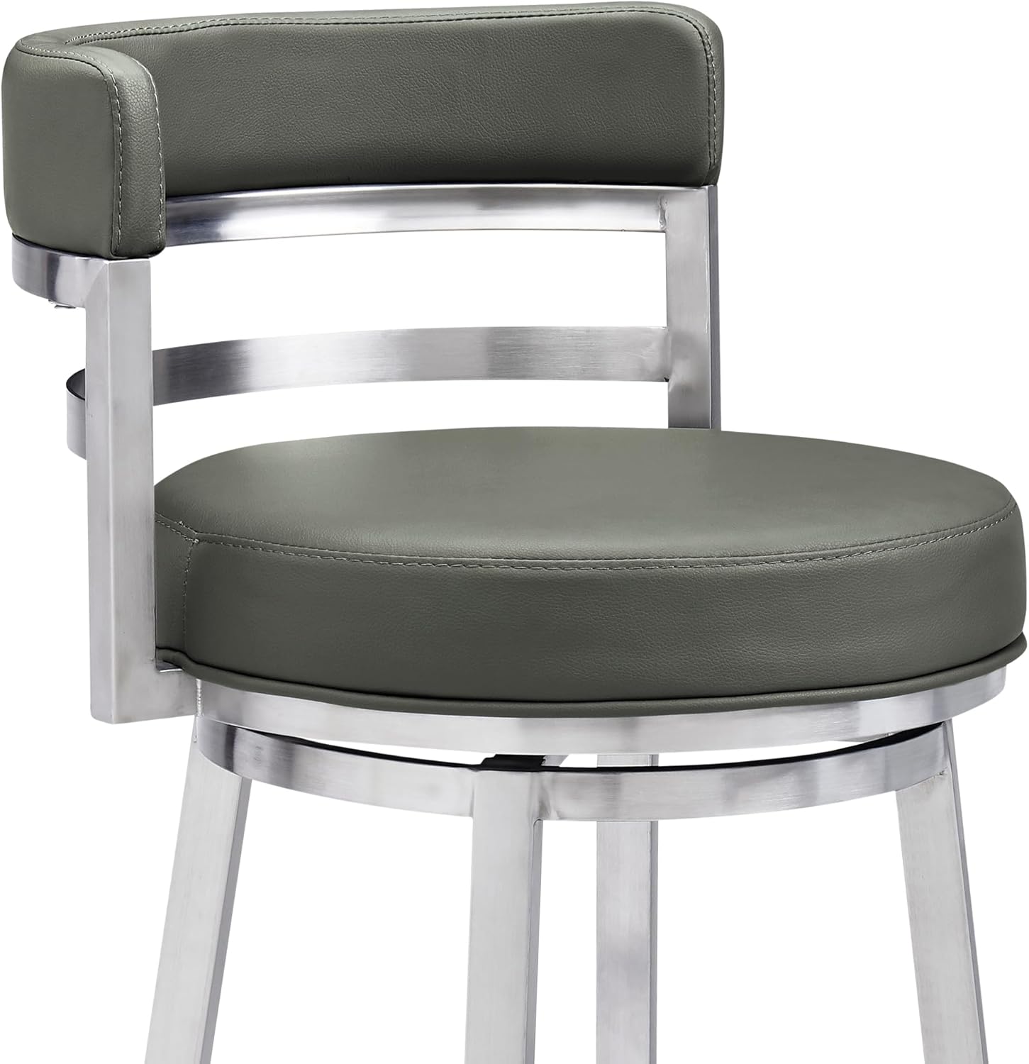 Armen Living Titana 26" Counter Height Swivel Grey Faux Leather and Brushed Stainless Steel Bar Stool