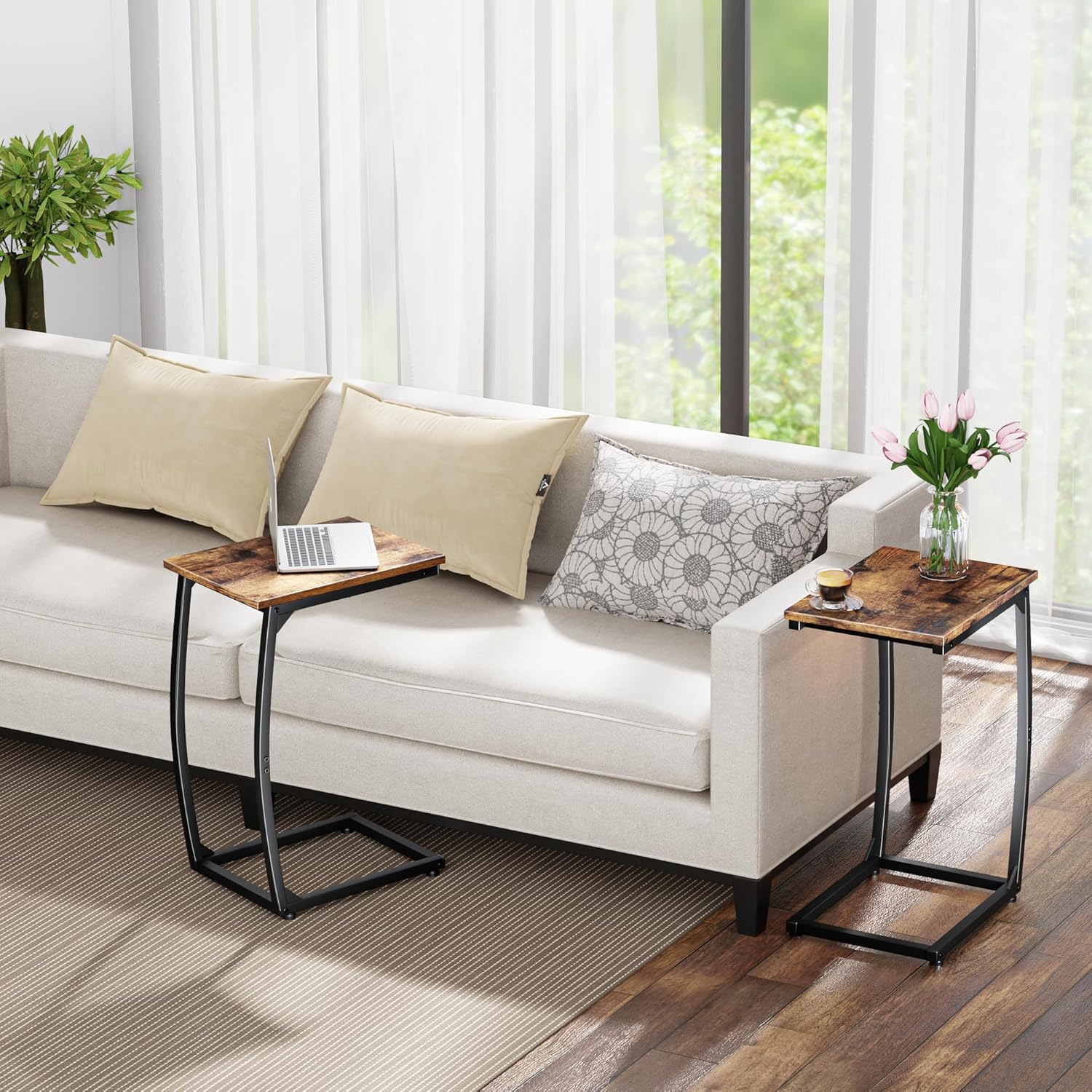 C-Shaped End-Table Set of 2 - Side Table for Couch,Curved Support Legs, Slide Under Couch Table for Sofa, TV Tray Table for Living Room Bedroom (Rustic Brown)