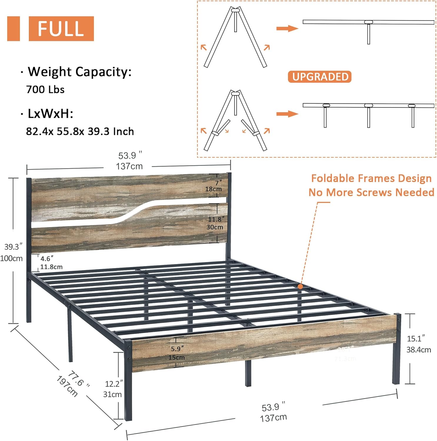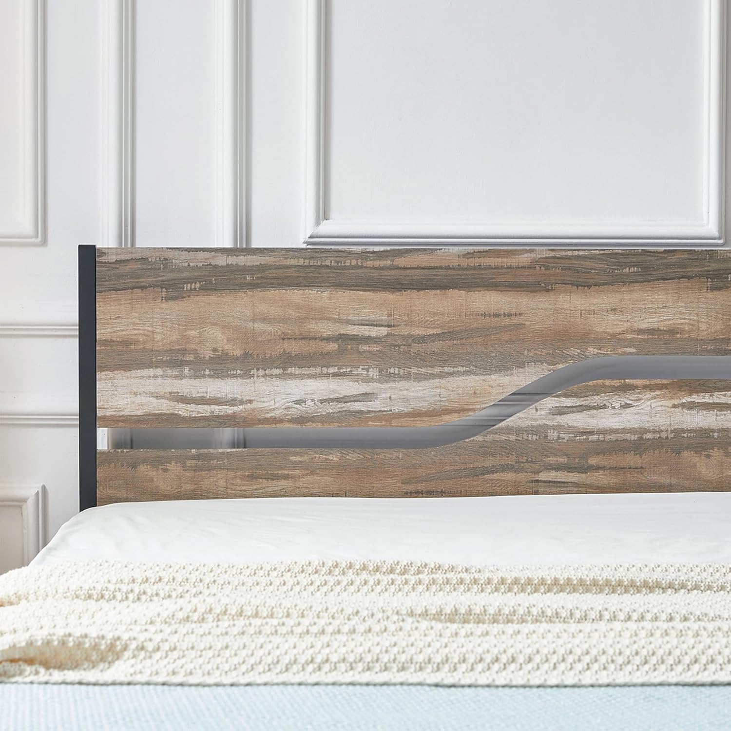 - Sturdy & Stable: This bed frame build with 9 legs and 14pcs of heavy-duty steel slats, grey oak Industrial wooden grain headboard and footboard adds better supports to your mattress;