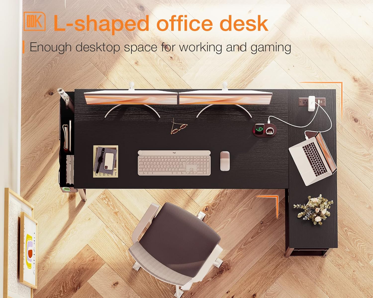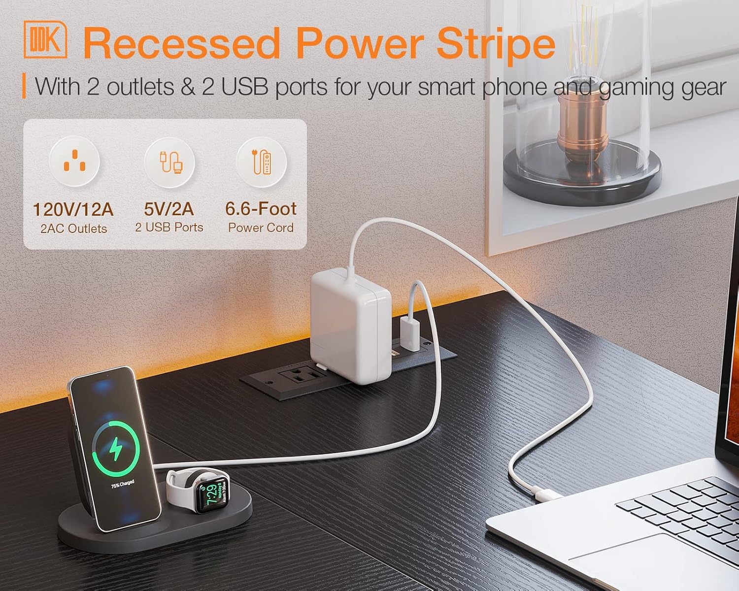 - 【Power Outlets & Charging Ports】 ODK L shaped computer desk is equipped with 3 power outlets & 1 USB charging port & 1 Type-C port for your electronic devices, you can easily and conveniently charge your smart phone, gaming gear or Bluetooth devices when you are working or playing games.