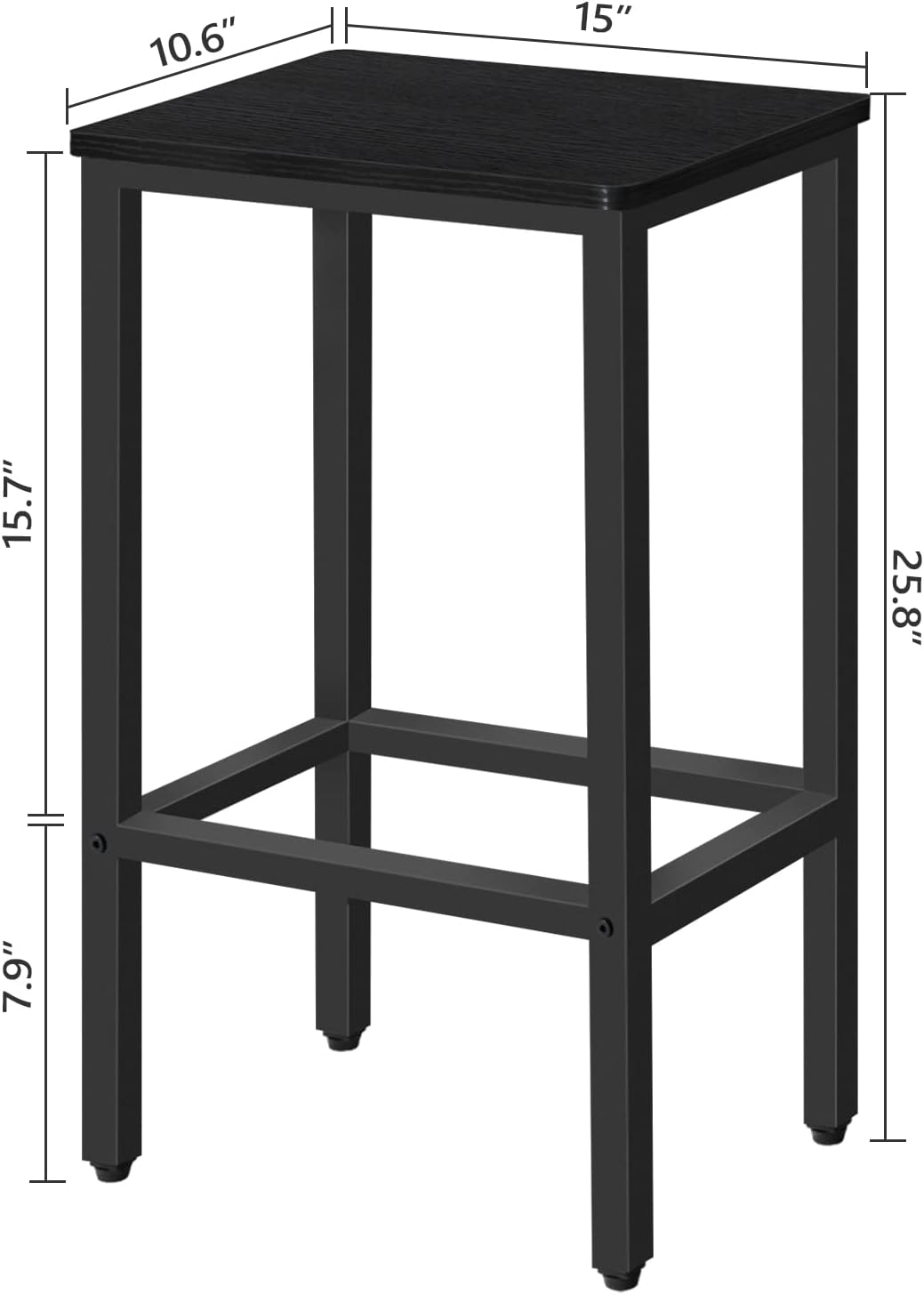 Bar Stools, Set of 2 Bar Chairs with Footrest, 2-Piece Dining Stools, 25.8-Inch Height, Rectangular Industrial Bar Stools, Strong Metal Frame, for Dining Room, Kitchen, Black BAHB0101