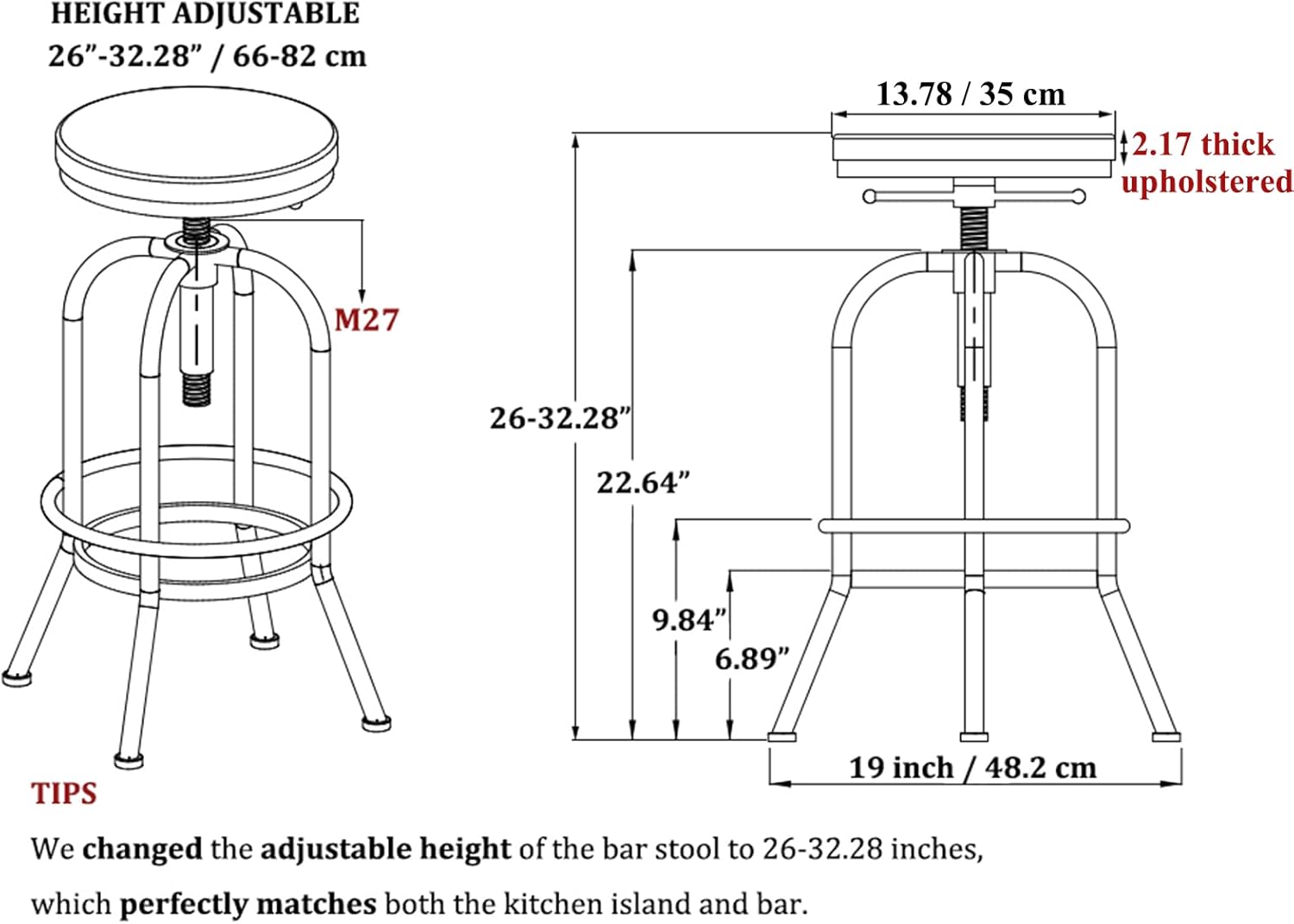- 【MULTIFUNCTIONAL】Industrial Swivel Stool-Backed up by functional durability.Swivel seat to switch directions freely;Height adjustable from 26 to 32 inch, which meets your many needs,perfect for family gathering party or any occasion.