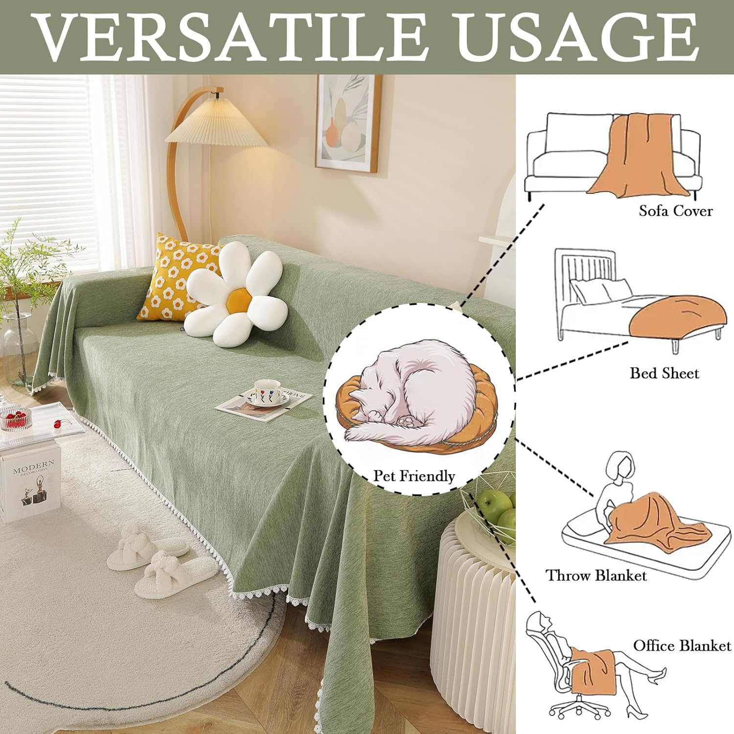 HANDONTIME Couch Cover, Sofa Covers, Sage Couch Cushion Cover Dog Furniture Protector for Living Room Chenille Couch Throw Cover Soft Thick Machine Washable Throw Blankets Sofa Slipcovers, 71" X134"