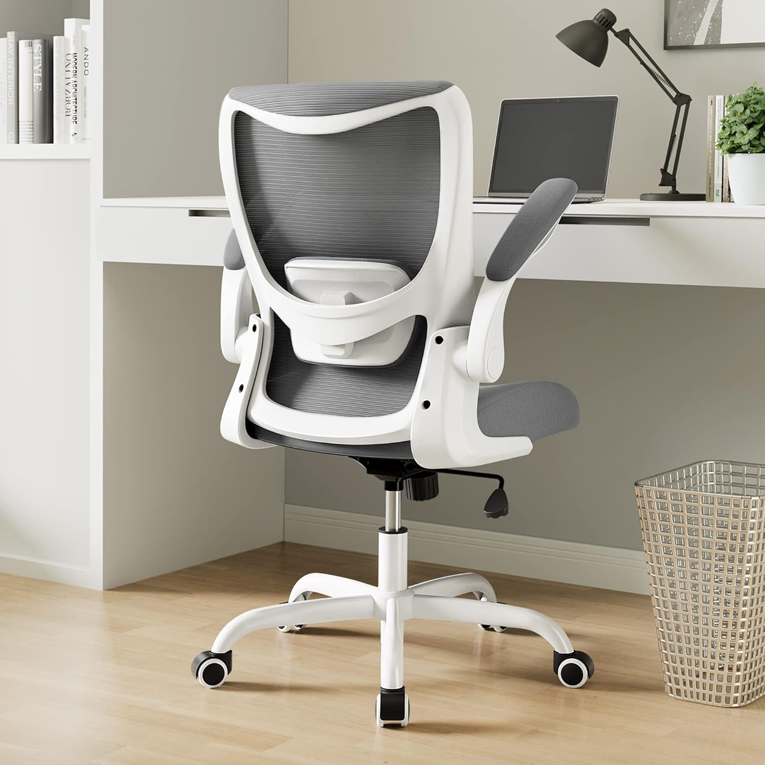 Office Chair, Ergonomic Desk Chair with Adjustable Lumbar Support and Flip up Armrest, Breathable Mesh Computer Chair for Home Office, Gray
