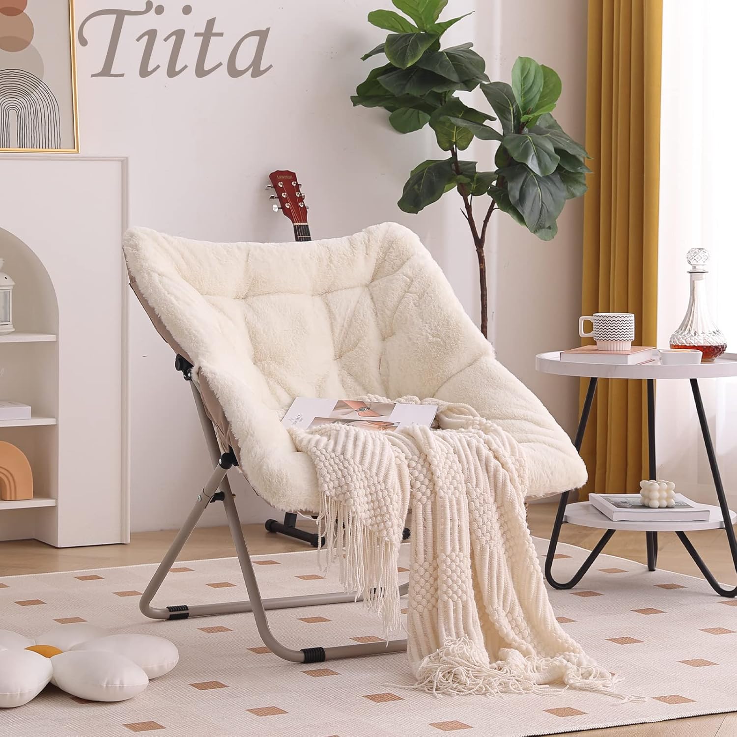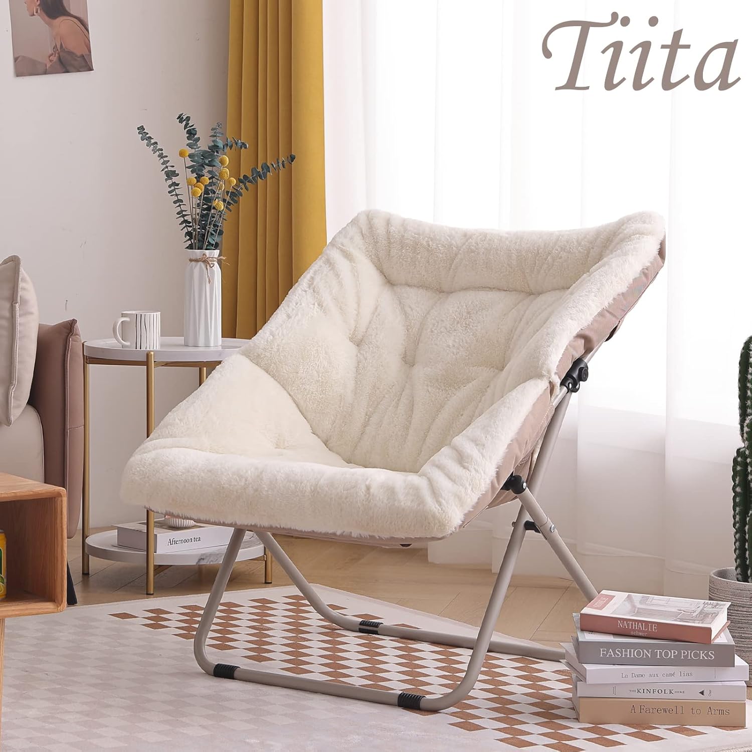 Tiita Comfy Folded Chair, Soft Faux Fur Oversized Folding Accent Chair, Lounge Lazy Chair for Kids Teens Adults, Metal Frame Moon Chair for Bedroom, Living Room, Dorm Rooms