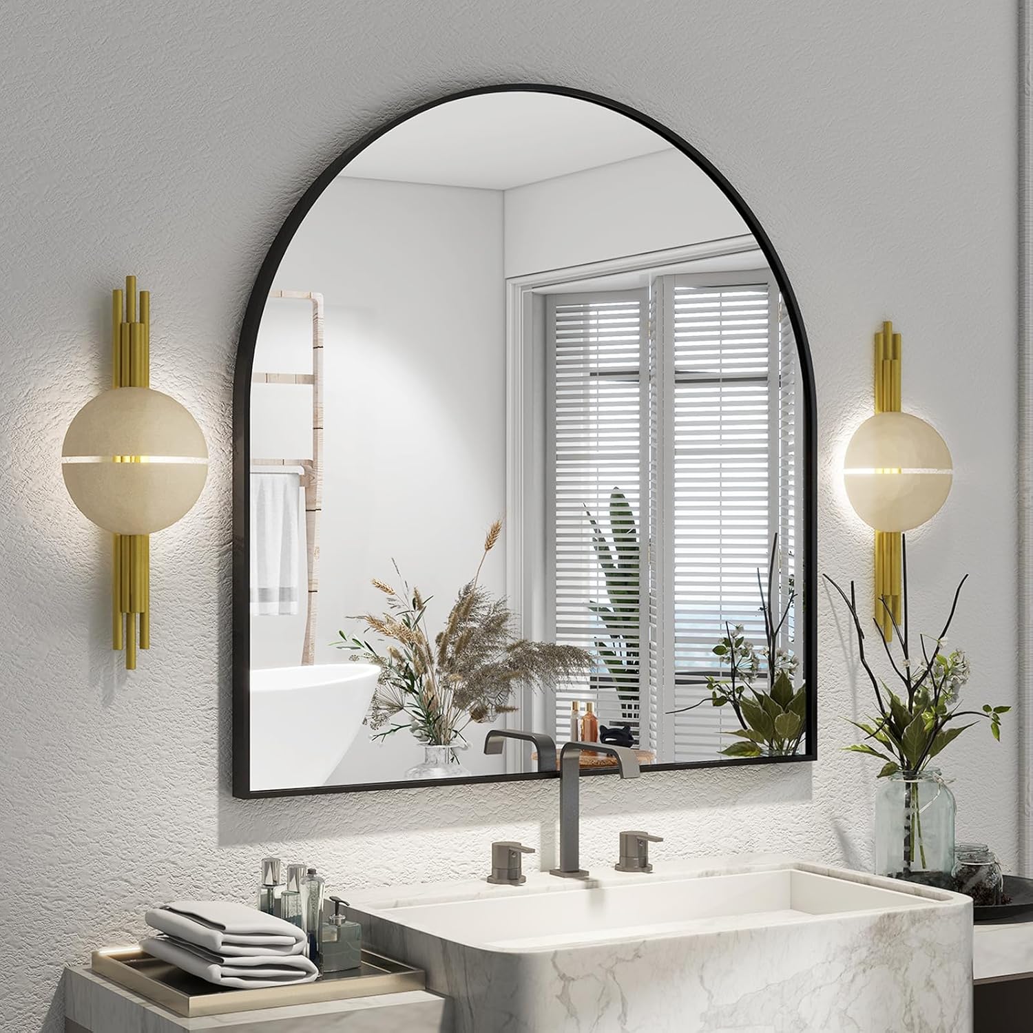 Arched Bathroom Mirror 32" x 34" for Bathroom Vanity Mirror or Wall Decor Black Arch Mirror Aluminum Alloy Frame Wall Mounted Mirror for Living Room Bedroom Entryway
