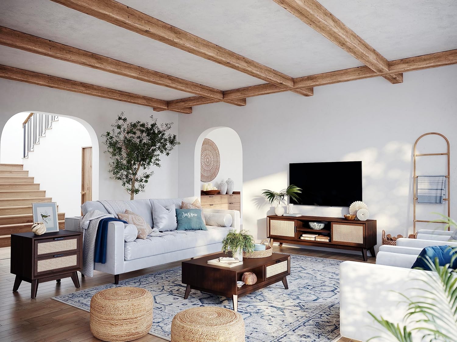 - MULTIFUNCTIONAL SOLID WOOD BOHO SIDE TABLE: Our mid century side table is both fashionable and functional; The rattan side table can meet your storage needs with its spacious tabletop; Two rattan drawers of the bed side table have a wide storage space