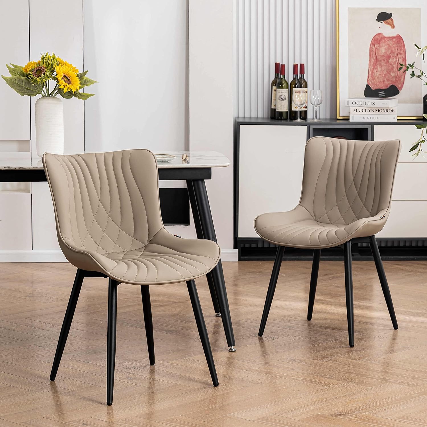 YOUTASTE Dining Chairs Set of 2 Upholstered Mid Century Modern Kitchen Dining Room Chairs Armless Faux Leather Accent Chairs Metal Vanity Lounge Chair with Back for Living Room Bedrooms,Khaki