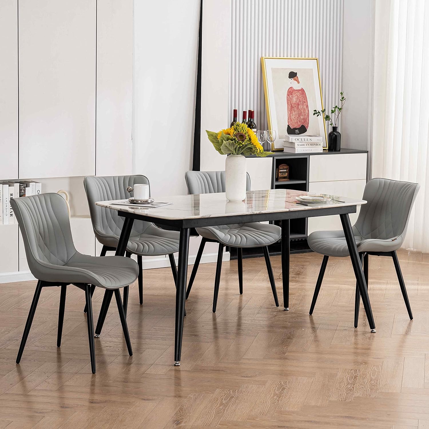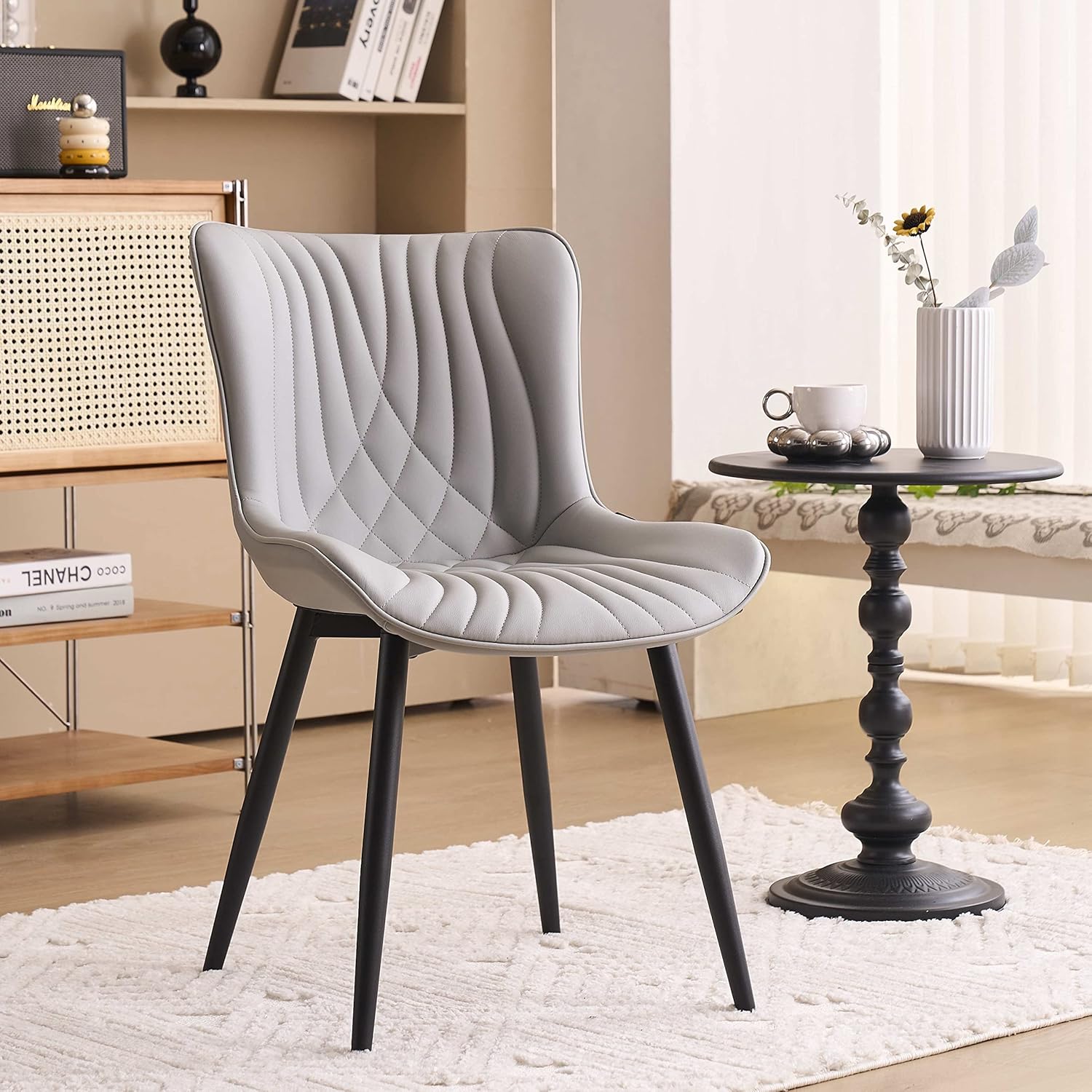 YOUTASTE Grey Dining Chairs Set of 2 Faux Leather Upholstered Kitchen Dining Room Chairs Mid Century Modern Metal Legs Chairs High Back for Kitchen Restaurant Living Room Bedrooms