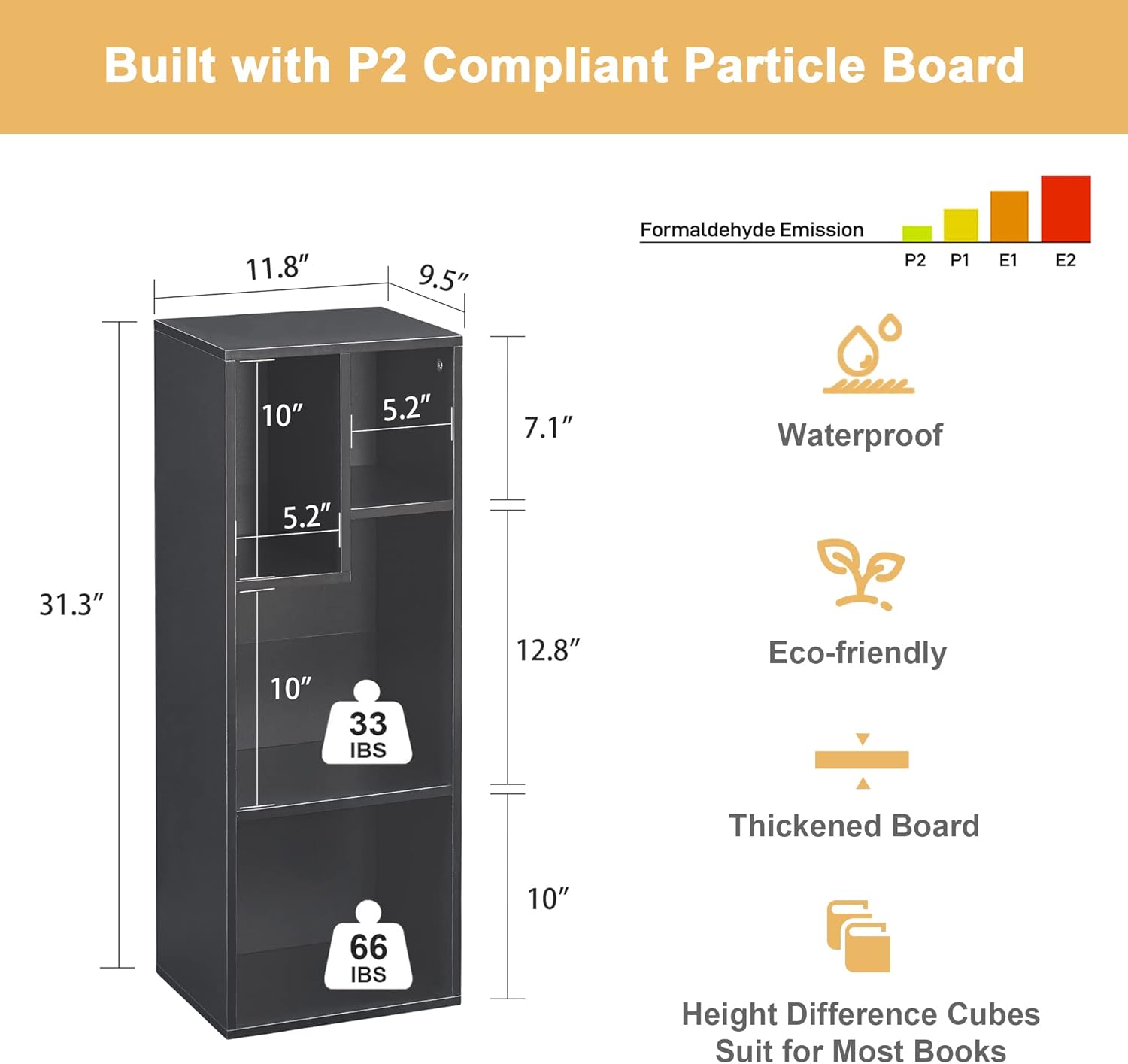 - 🎃【Small Changes,Big Difference】: With Height Difference Shelves, This Bookcase, Unlike Those with Fixed Height, Matches Books that Height Up to 12.8 Inch,Suit for Most Books.