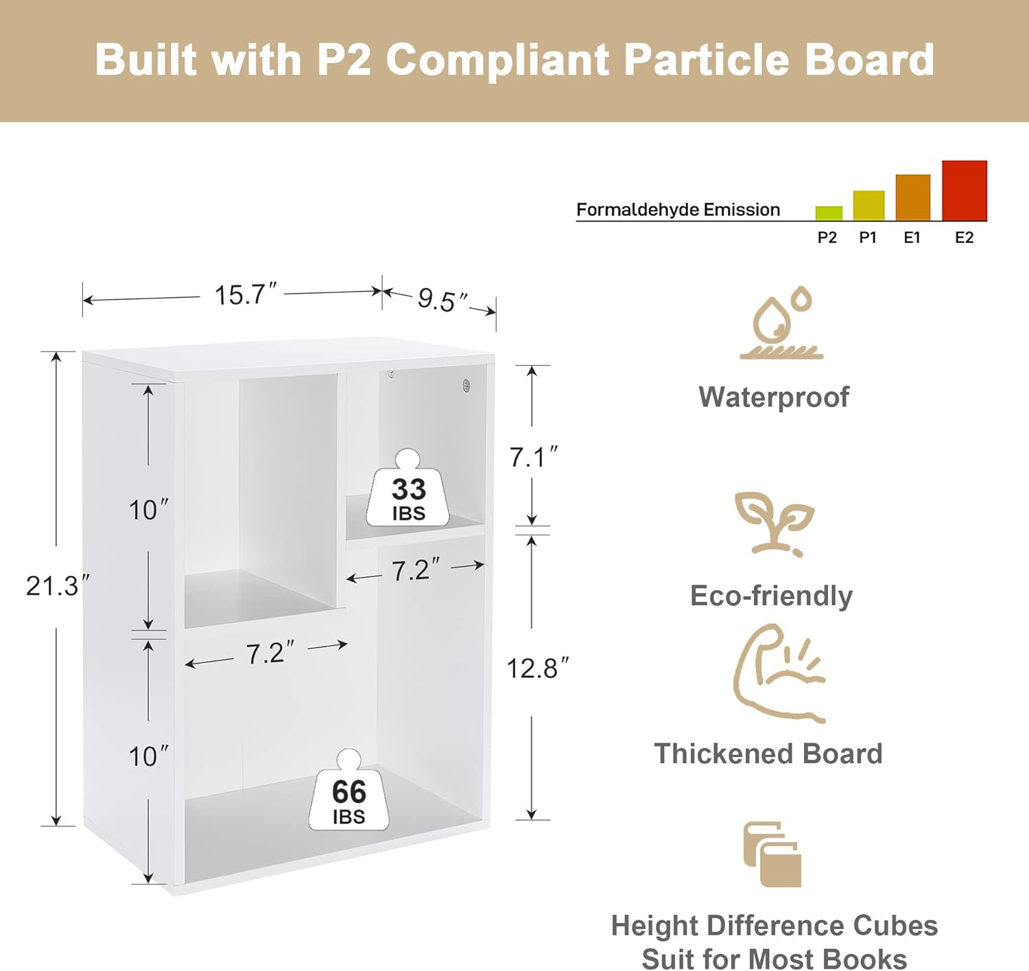 - 🎃【Simple & Stylish】: 2 Tier, 3 Cube, This Bookcase, Ideal for Small Spaces, Apartments, Dorms Or Any Place With Limited Space, Simple and Stylish, Classical Design Will Never Dated.