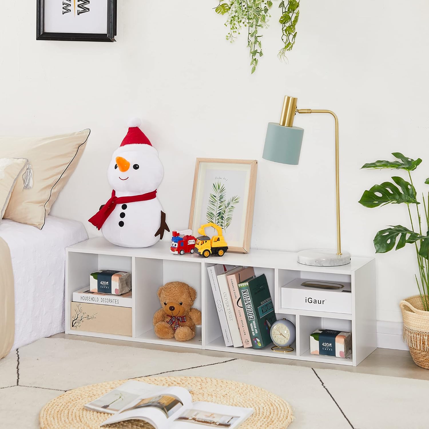 VECELO 4-Tier Bookcase, Modern Storage Cabinet with Height Difference Shelves for Standard Textbooks, 5 Cubes, Vertical or Horizontal, Easy Assembly, Pearl White