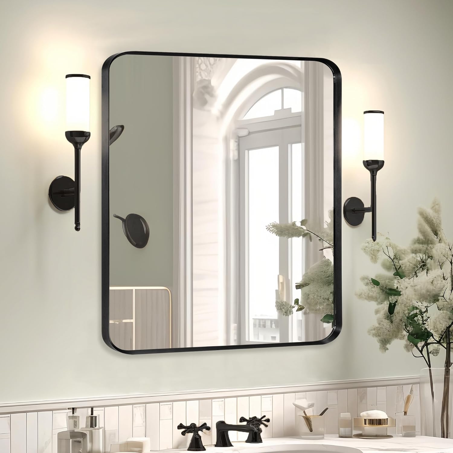- Versatile Convenience: Our black metal mirror adapts seamlessly to various spaces, from the bathroom to the bedroom, living room, dining room, entrance, and even fireplace. From hotels to hair salons. From household to commercial. You can use it with confidence. It serves as both a practical vanity mirror and a chic decorative accent