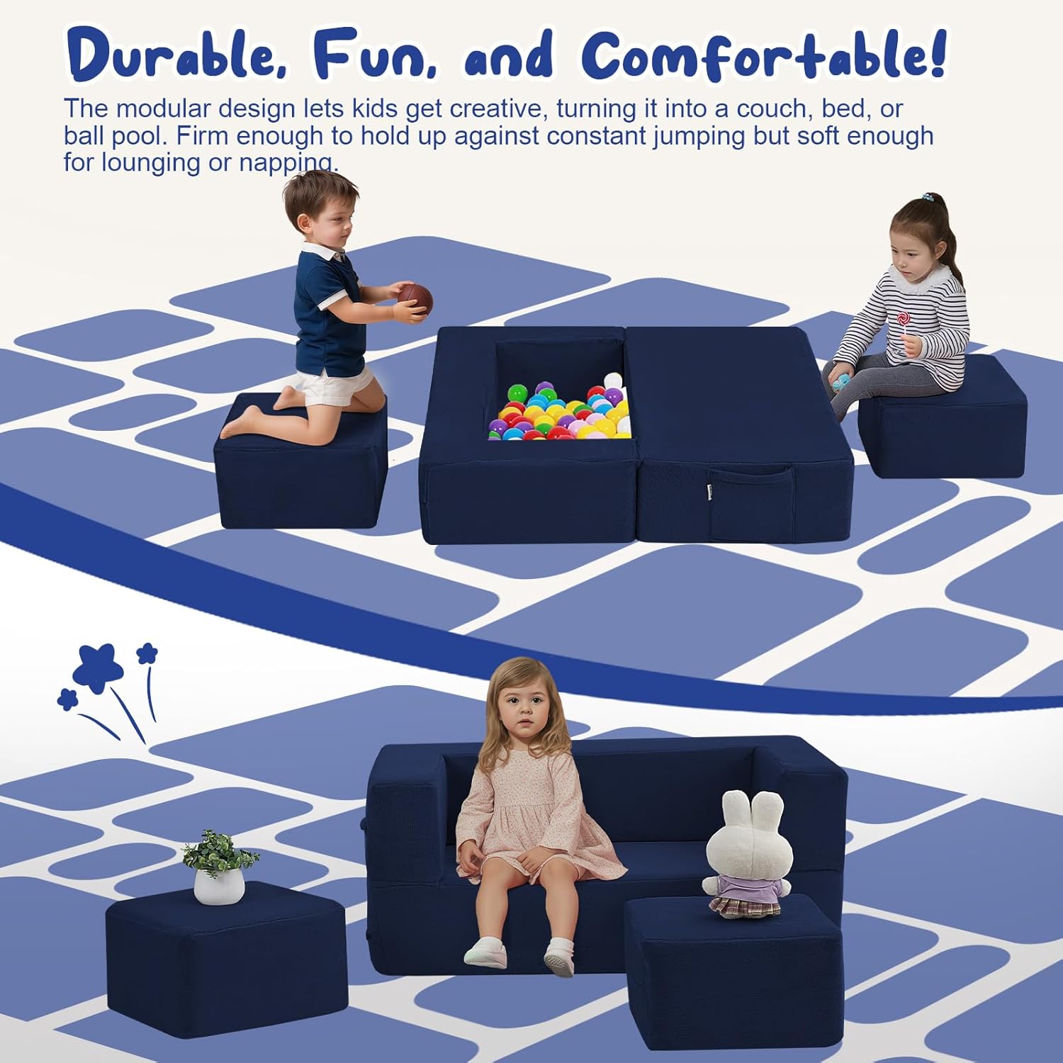 - [Inspires Endless Imagination] More than just a sofa, this play couch transforms into a table, bed, puppet theater, fort, obstacle course, ball pit, or hideout—fueling your child’s creativity and providing hours of fun right out of the box