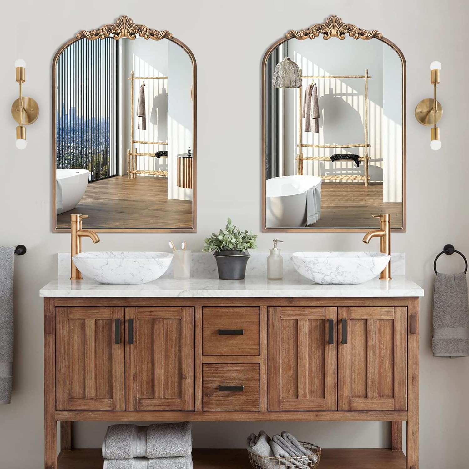 WAMIRRO Arched Gold Mirror,Gold Traditional Vintage Ornate Baroque Mirror,Antique Brass Mirrors,Wall Mounted Mirrors for Entryway/Fireplace/Living Room/Hallway/Bathroom.36“X24”Gold