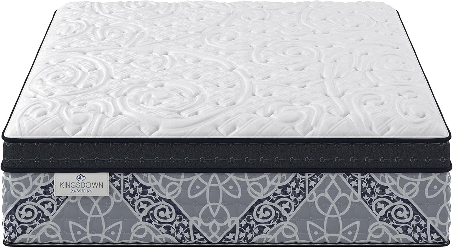 Kingsdown Passions Kelbrooke 16" Plush Euro Pillow Top Hybrid Mattress Twin, Cool Gel Memory Foam Layer Motion Isolation Quilted Top Premium Mattress