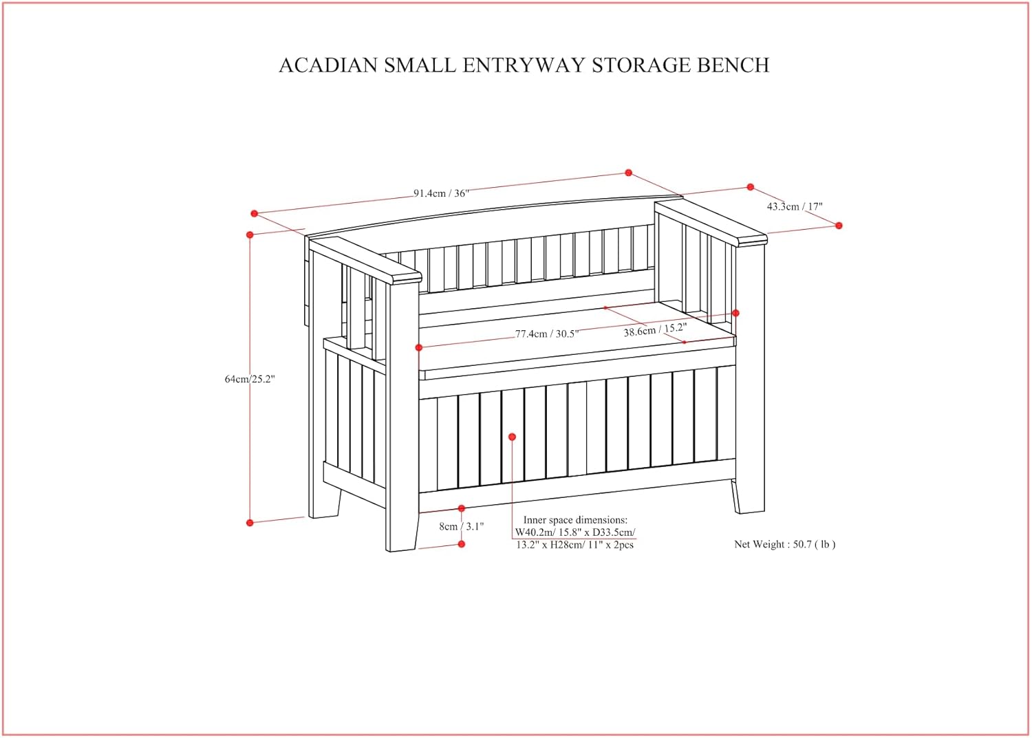 - Style Small Storage Bench : Item Weight 34.2 Pounds