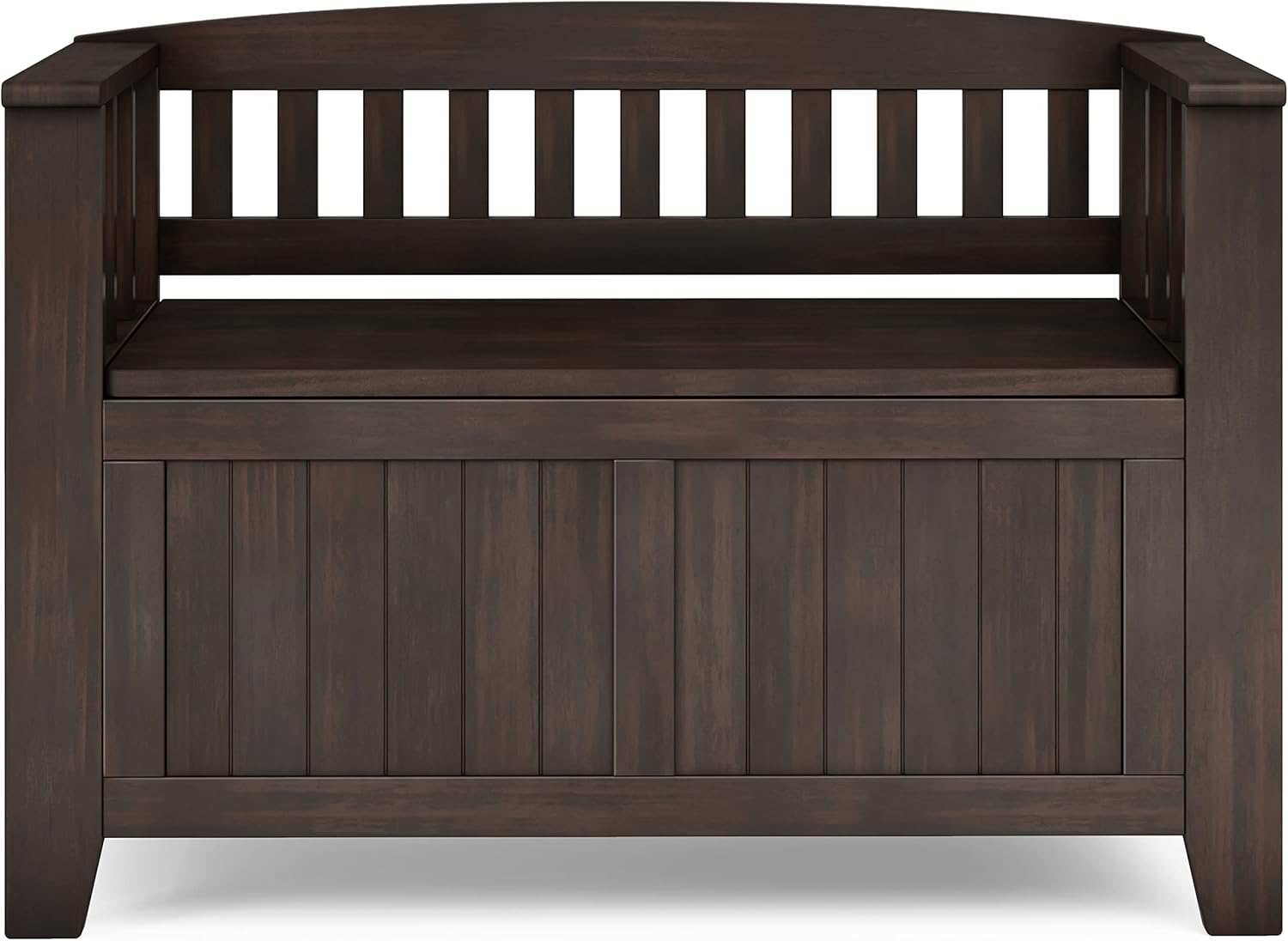 SIMPLIHOME Acadian Entryway Storage Bench - 36 inch Wide Solid Wood Small Hallway Seat in Brunette Brown, Transitional Bench for Mudroom with Lift-Up Lid, 2 Compartments and Slatted Backrest