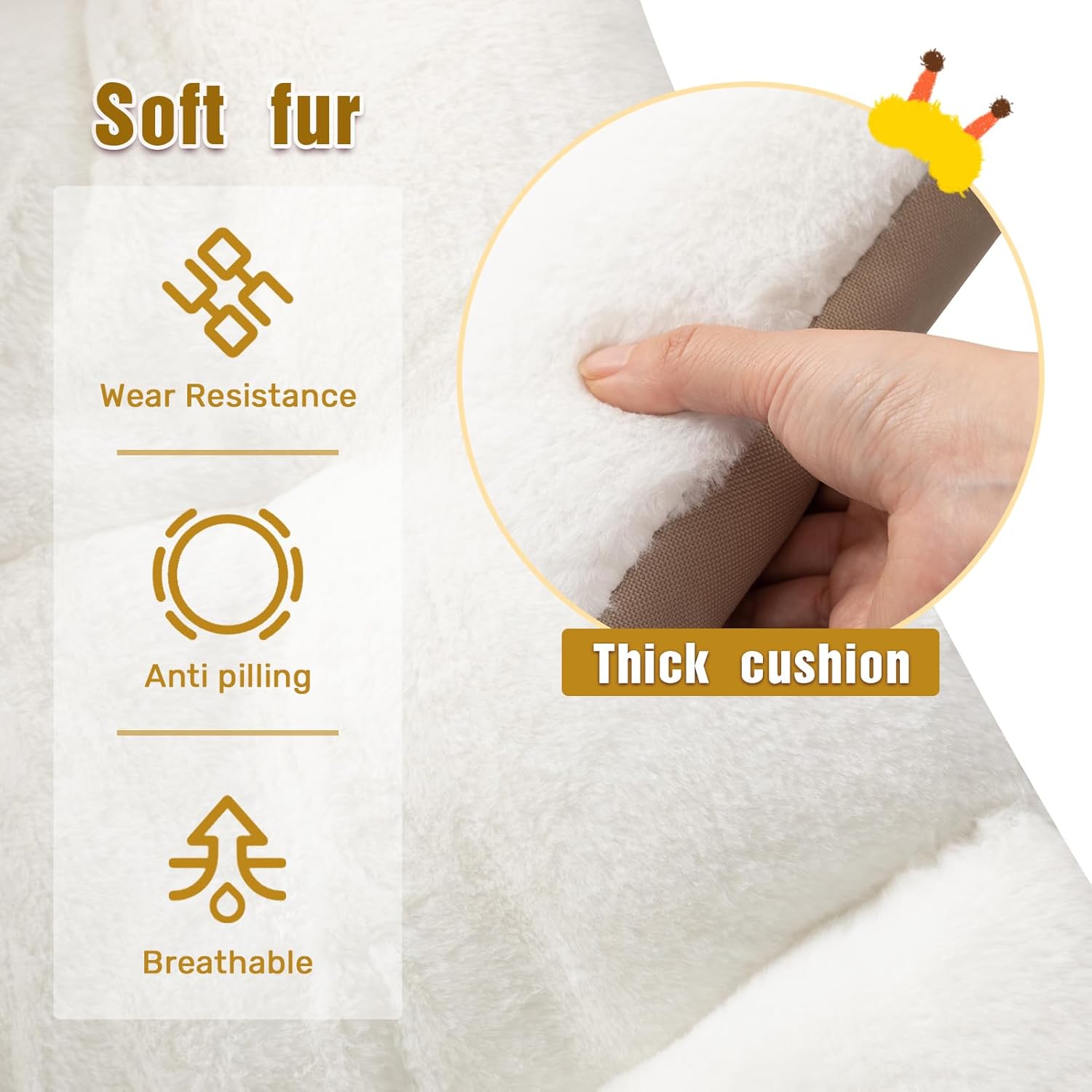 HollyHOME X-Large Saucer Chair, Comfy Oversized Folding Chair, Faux-Fur Reading Chair for Teens, Adults, Foldable Accent Lazy Chair, Metal Frame Lounge Chair for Living Room, Bedroom, Dorm, White