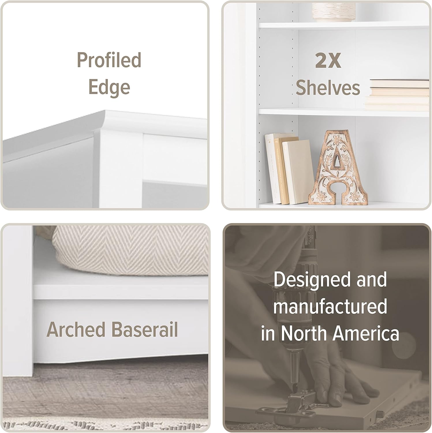 Prepac Sonoma 2-Tier Bookcase 29"H with 1 Adjustable Shelf, White Storage Cabinet, Modern Display Cabinet, Bookshelf with Storage Shelves for Home Office, Living Room, Bedroom Organizer