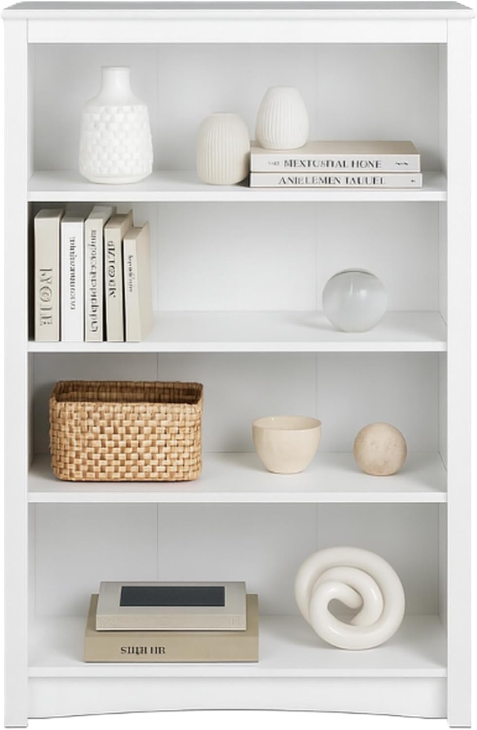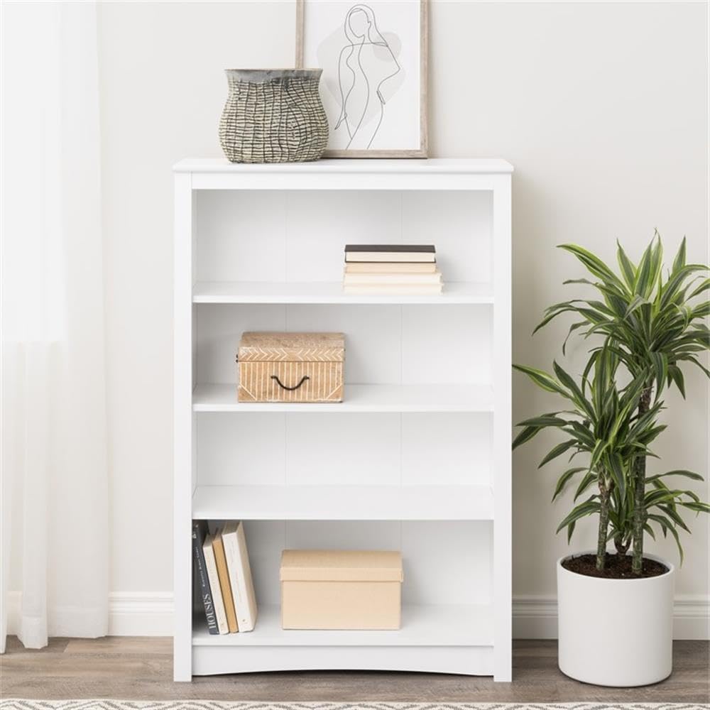 Prepac Sonoma 4-Tier Bookcase 48"H with 3 Adjustable Shelves, White Storage Cabinet, Modern Display Cabinet, Bookshelf with Storage Shelves for Home Office, Living Room, Bedroom Organizer