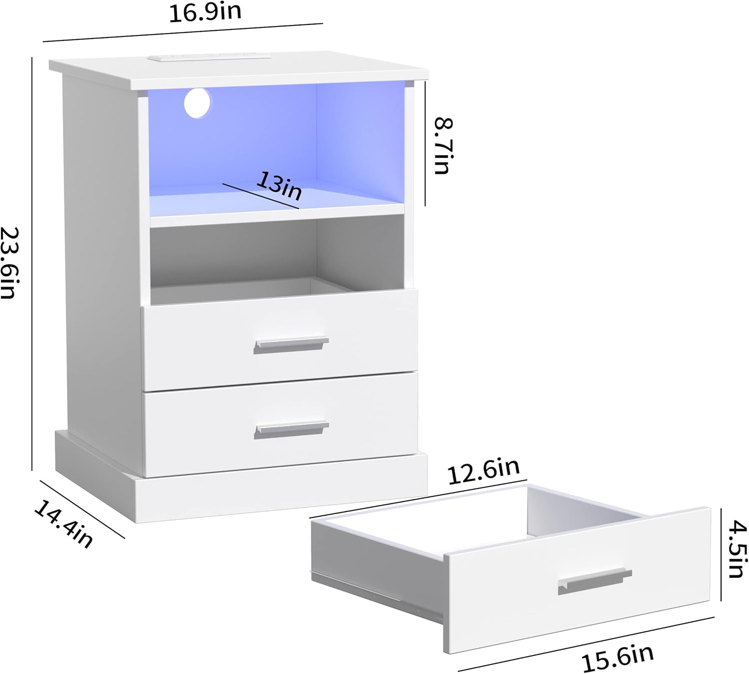 - [ LED Lights More Fashionable ]The Nightstand is equipped with 20 different color LED lighting effects, which make your home more modern and fashion at night, create a atmosphere, suitable for parties, etc.