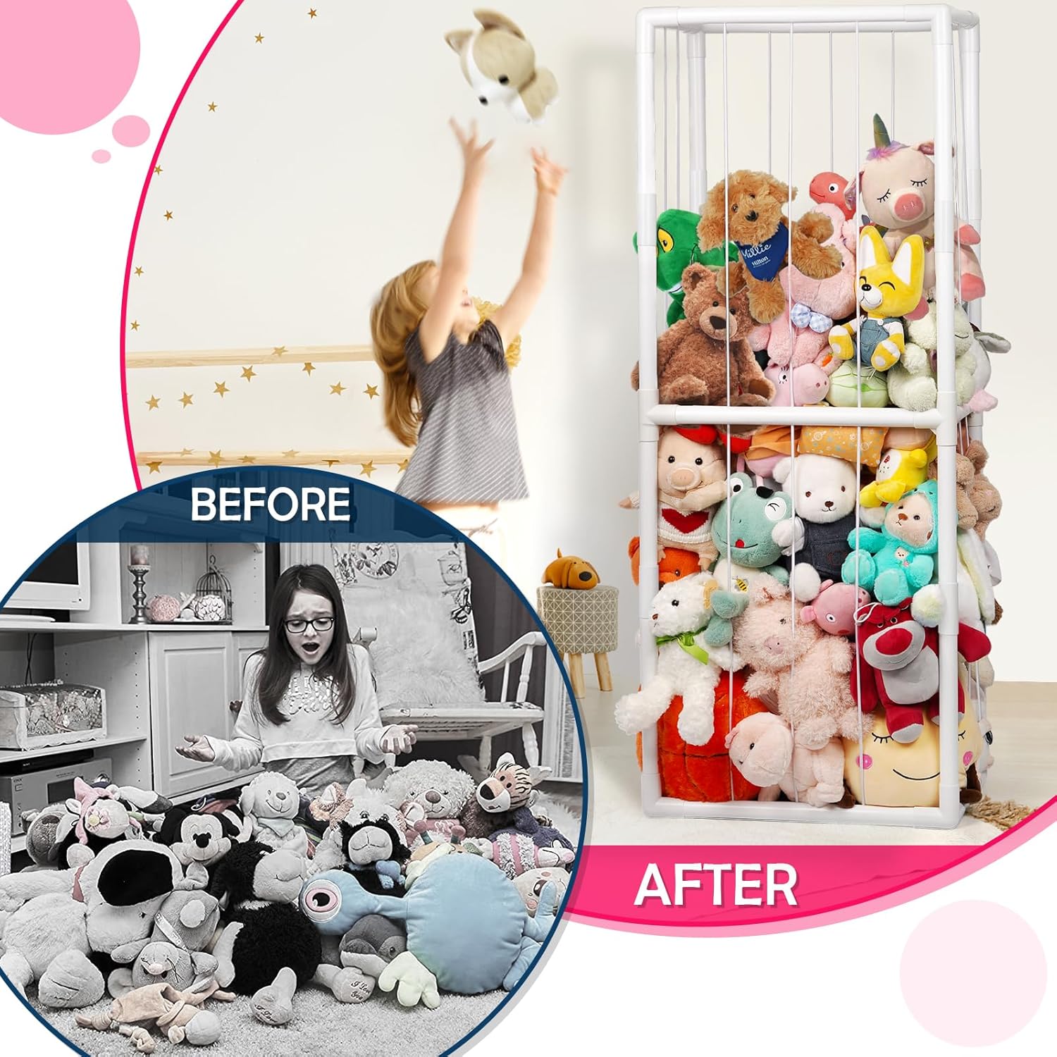 - 【Sturdy Construction】It is made with a sturdy, PVC and has a white base. The stuffed animal storage is designed with style and functionality in mind, perfect for playhouses, nursery room, kindergartens, corners, room organization.