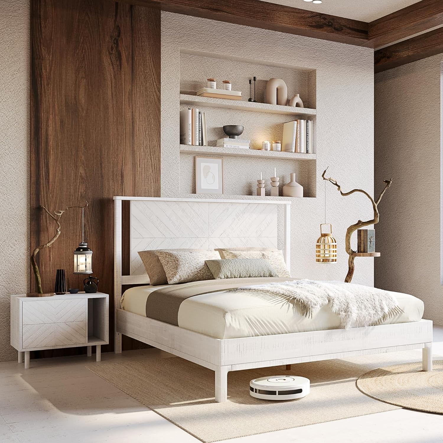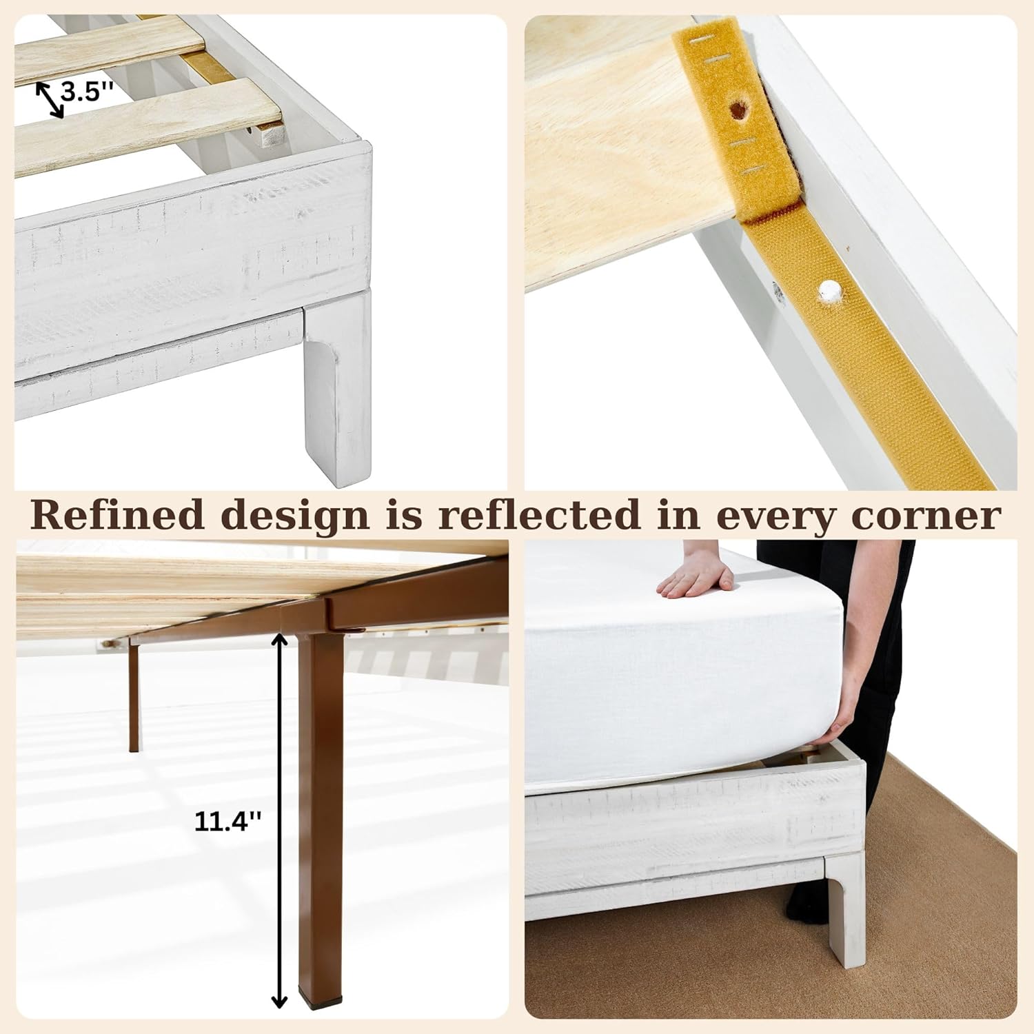- EXCEPTIONAL CRAFTSMANSHIP: The headboard queen size bed frame is sustainable acacia wood construction and undergoes a sanding process for making rustic wood bed frame finishes that make an impression with the tone of chic white