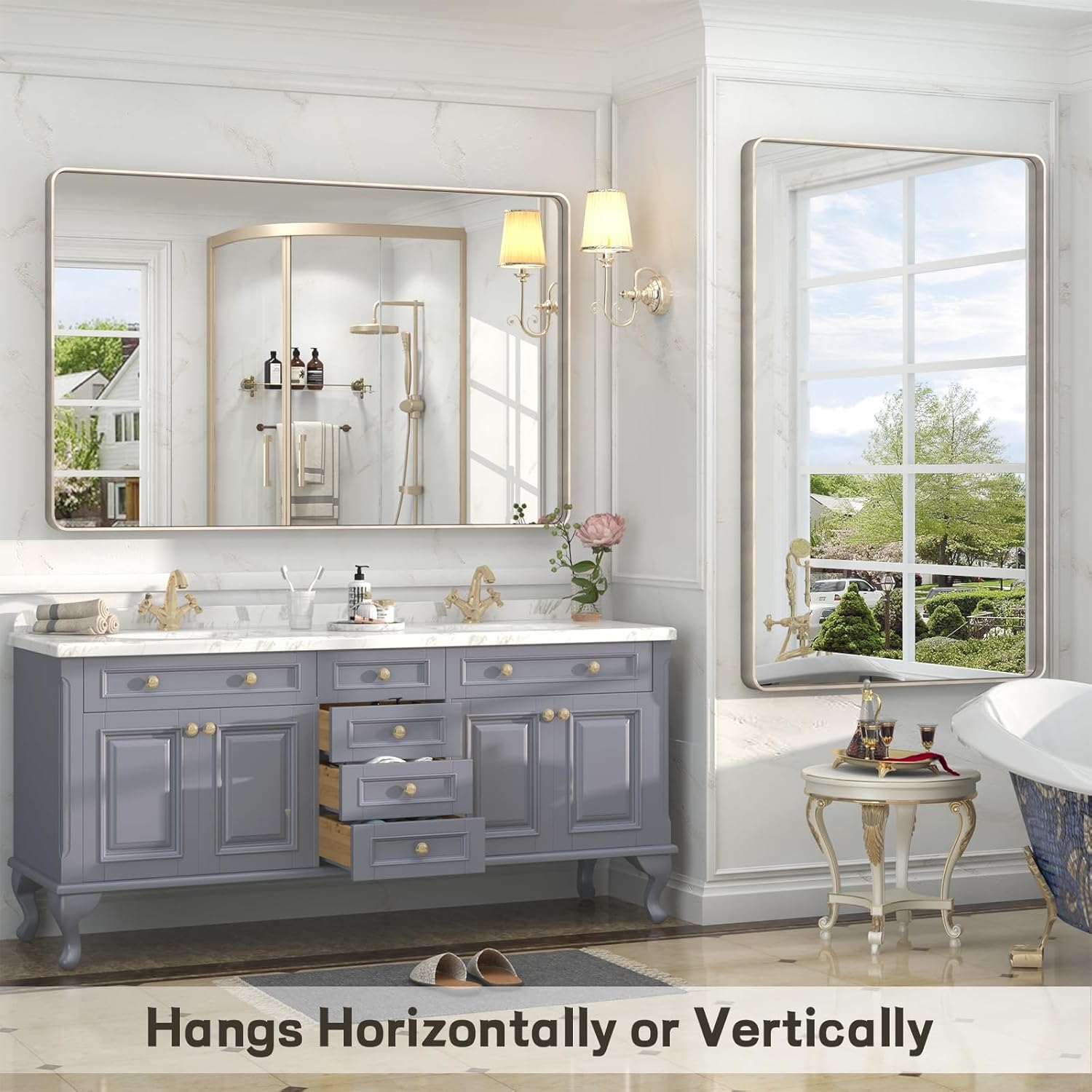 - Durable Silver Brushed Frame: VANLIO brushed nickel bathroom vanity mirror is made of premium brushed aluminum alloy frame, which is rust-proof, corrosion-resistant, and waterproof. More durable and sturdy, and non-deformed. With brushed texture and rounded corners, our Silver framed bathroom mirror looks very elegant and unique with modern and industry style, widely using in bathroom, vanity, farmhouse, bedroom, living room, dining room, entryway, fireplace.