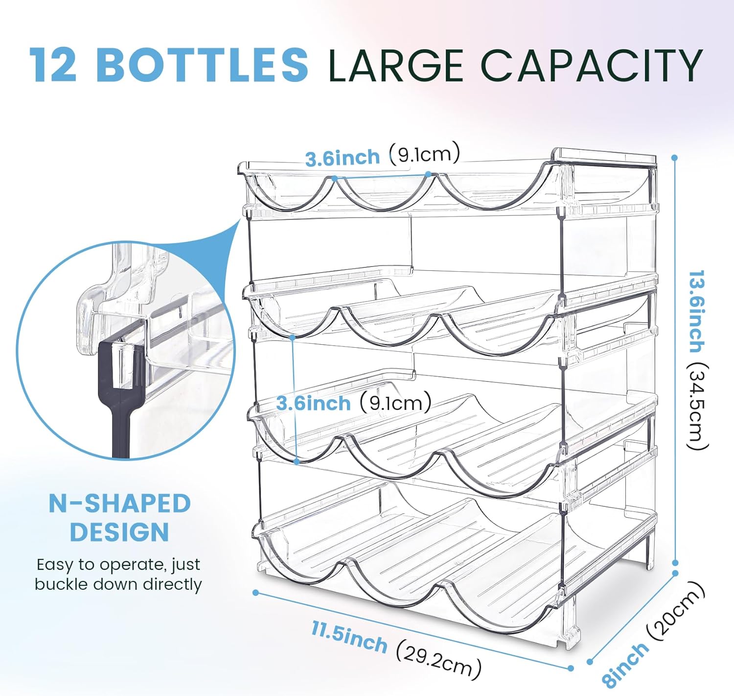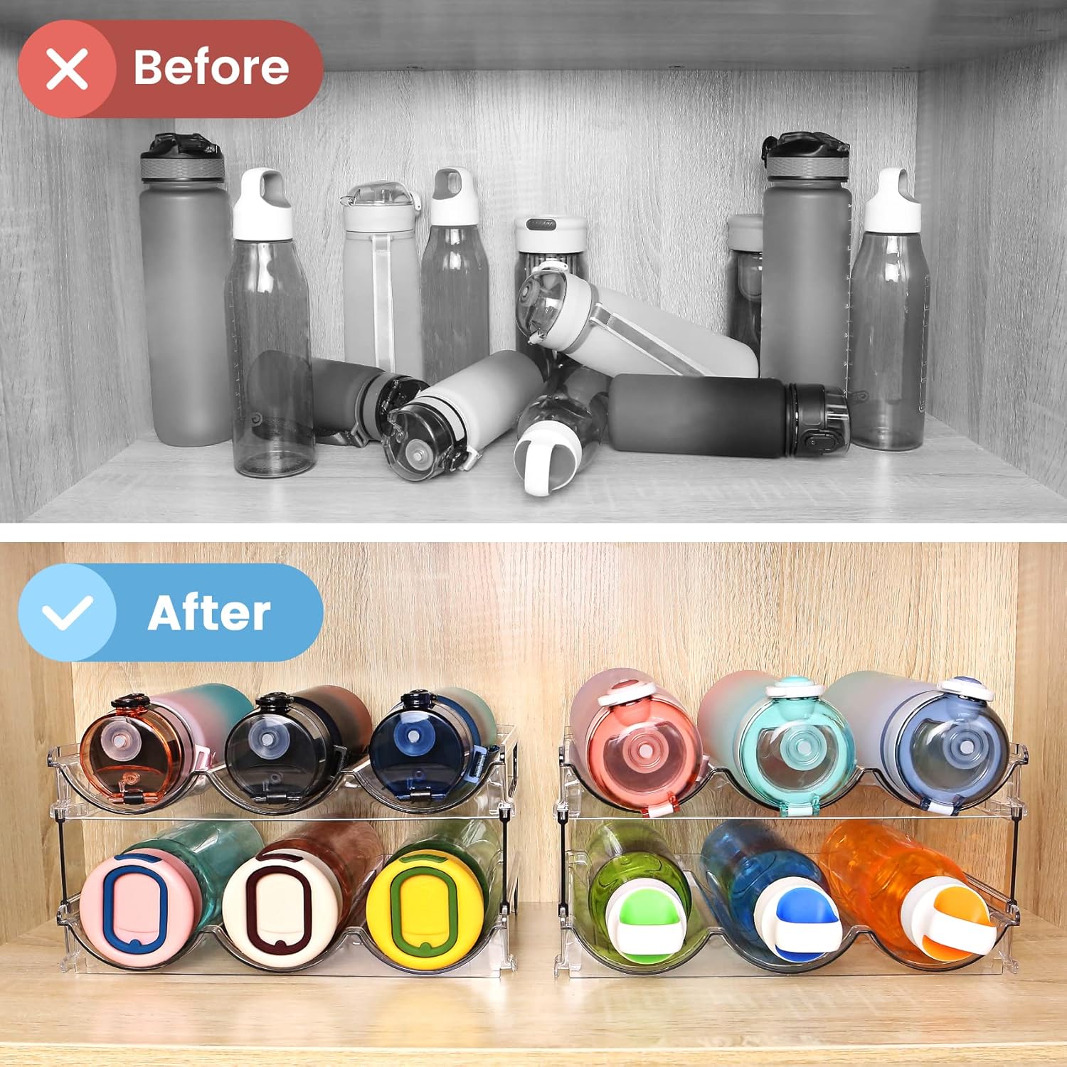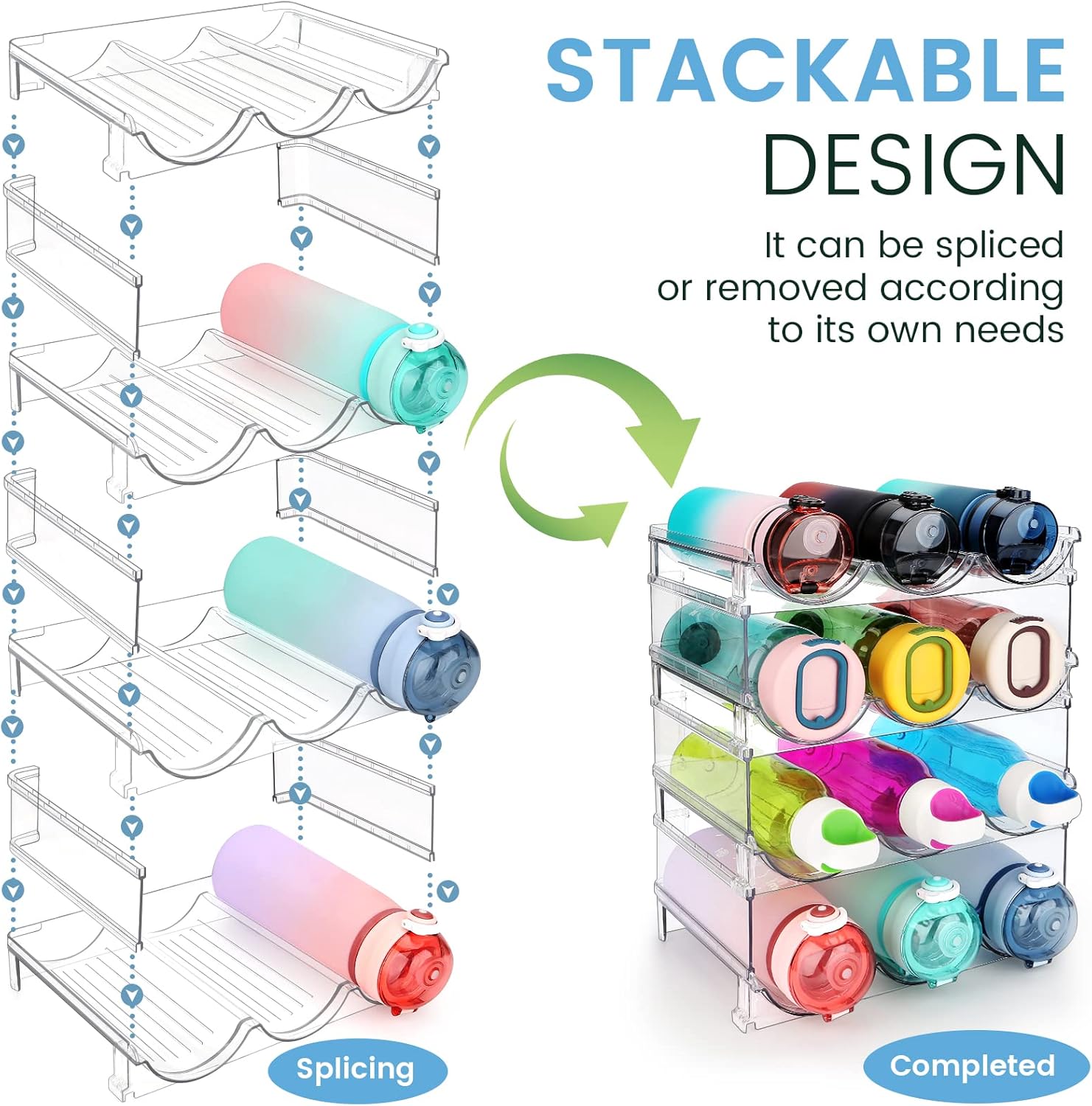 - Easy to Clean: 4 pack stackable water bottle holder for cabinet is easy to clean with mild soap and water. Do not put it in the dishwasher