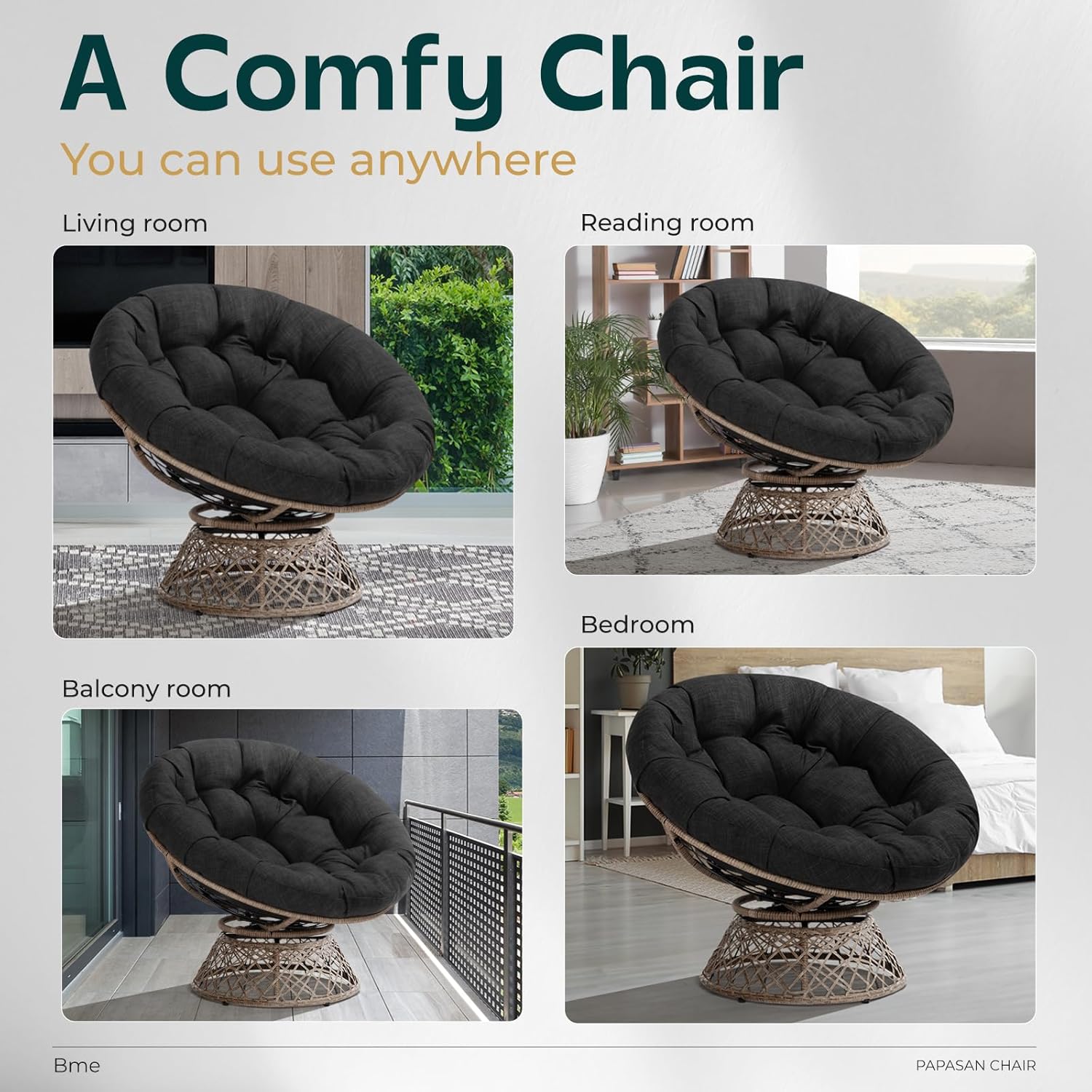 - VERSATILE WICKER PAPASAN CHAIR: Our large papasan chair, with its rounded shape and extra thick cushion, adds a cozy inviting space to relax whether you're sitting or curling up; The chair's elegant design complements any room decor, the suitable addition to your living room, bedroom, library or leisure lounge
