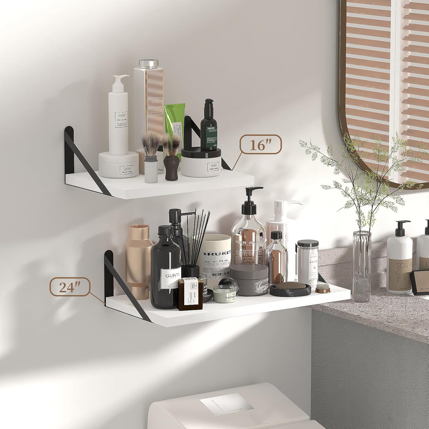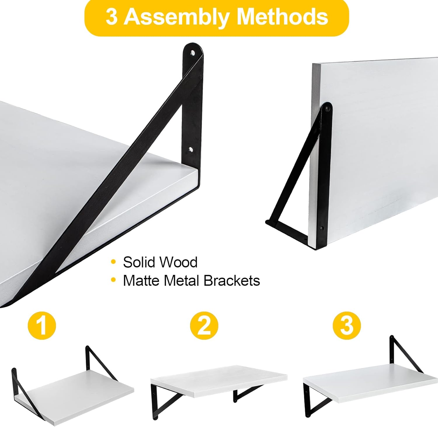 - Diverse Floating Shelves: The matte metal bracket can be installed either on the top or bottom of the shelf, providing various display options to suit your needs; Ideal for bathroom, bedroom, living room, kitchen, farmhouse, office, and dorm