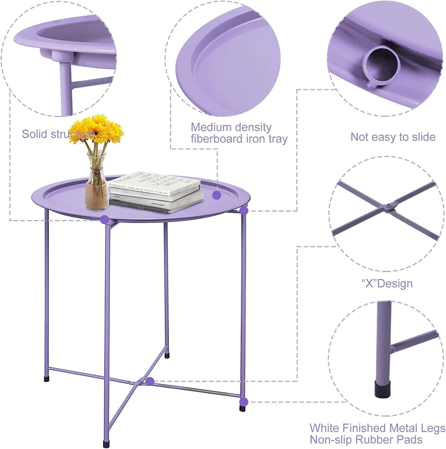 Garden 4 you End Table 2 PCS Metal Side Table Purple Round Folding Tray Cyan Sofa Small Accent Fold-able Table, Round End Table Tray, Next to Sofa Table, Snack Table for Living Room and Bed Room