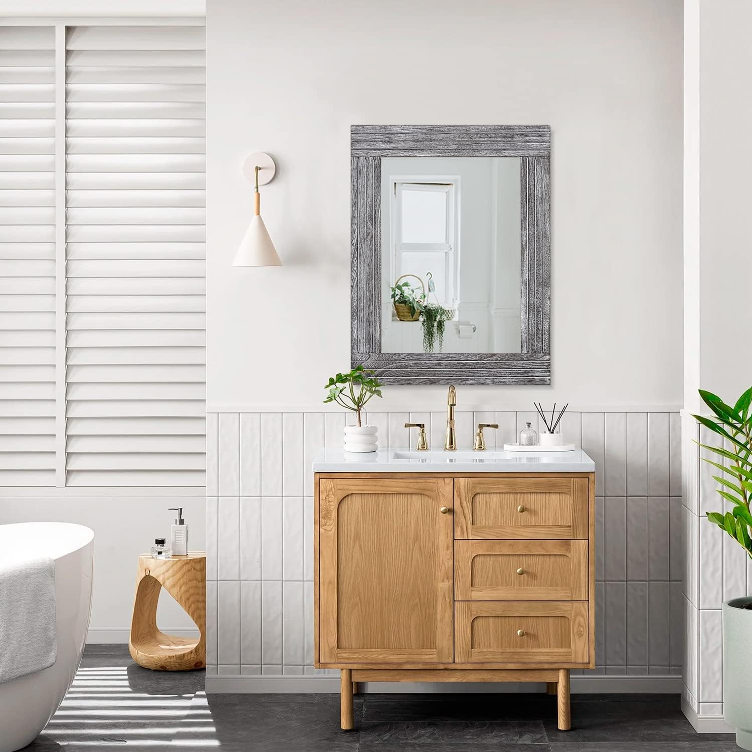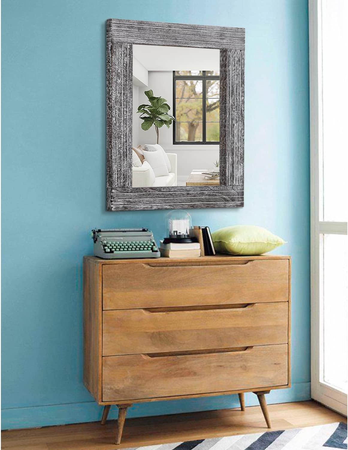 Rustic Wall Mirror Farmhouse, with Frame Wood Wall Mirror Rectangle Antique Decor Hanging Mirror for Bathroom Living Room Bedroom Entryway Large 20"x16"