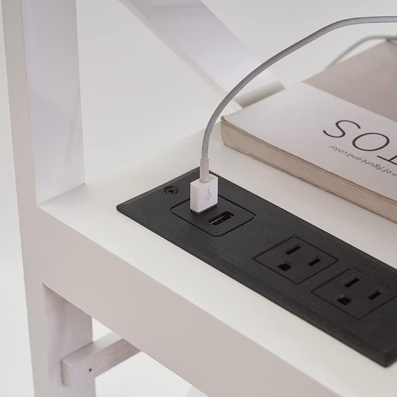 - 【Elegant Style and Powerful Function】The charging station is ingeniously designed on the open shelf of the pre assembled narrow side table, which will prevent water or drink on the tabletop from accidentally spilling onto it, especially for children, which greatly improves the safety, and it has a great look, isn't it great?