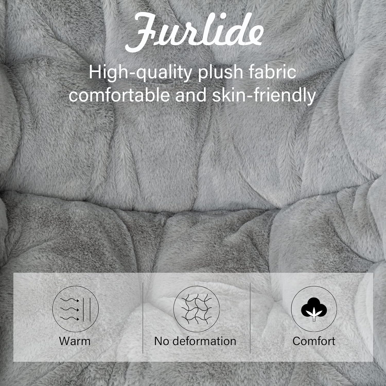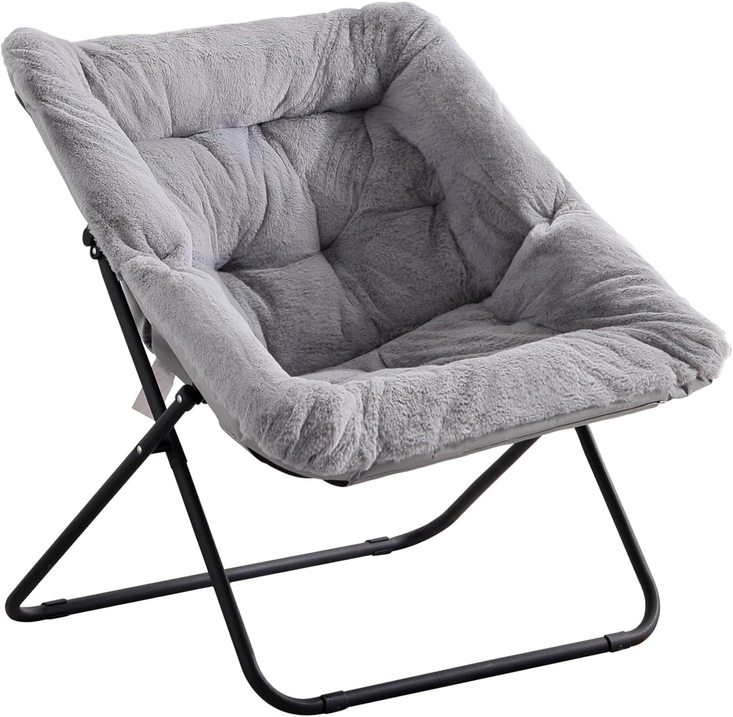 Comfy Dorm Chair - Oversized Folding Saucer Chair with Soft Faux Fur, Metal Frame, for Bedroom, Living Room, Balcony, Patio, Study, Playroom (Grey)