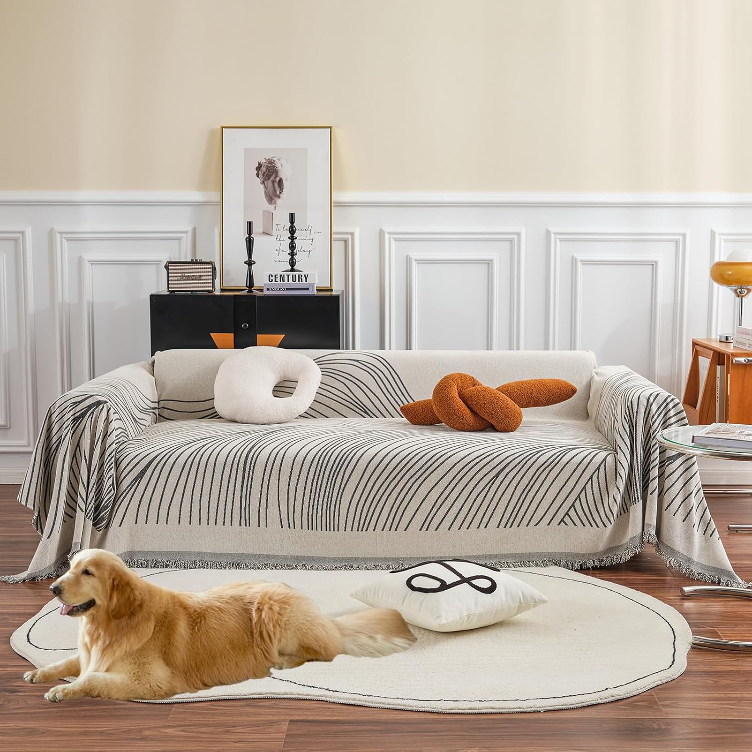 - 【Modern Minimalist 】Nordic minimalist style, the integration of geometric elements, irregular stripes of flow and dexterity, highlighting the home distinctive, so that your life is full of unlimited fantasy possibilities, stripes between the bumpy three-dimensional sense, to the living room a new sense of space, while this sofa blanket to protect your sofa from pet urine and saliva damage let you enjoy happy times!