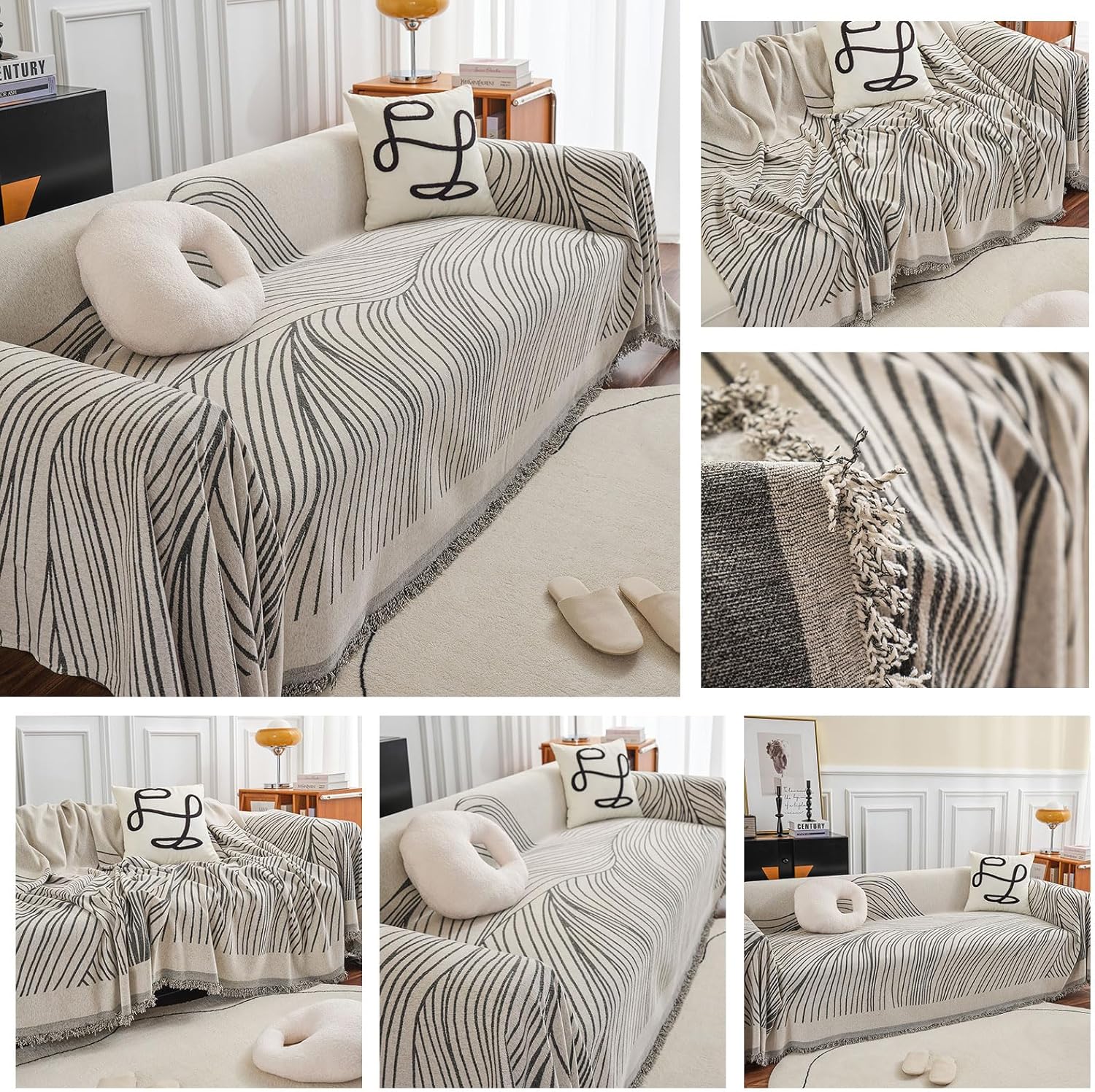 - 【Modern Minimalist 】Nordic minimalist style, the integration of geometric elements, irregular stripes of flow and dexterity, highlighting the home distinctive, so that your life is full of unlimited fantasy possibilities, stripes between the bumpy three-dimensional sense, to the living room a new sense of space, while this sofa blanket to protect your sofa from pet urine and saliva damage let you enjoy happy times!