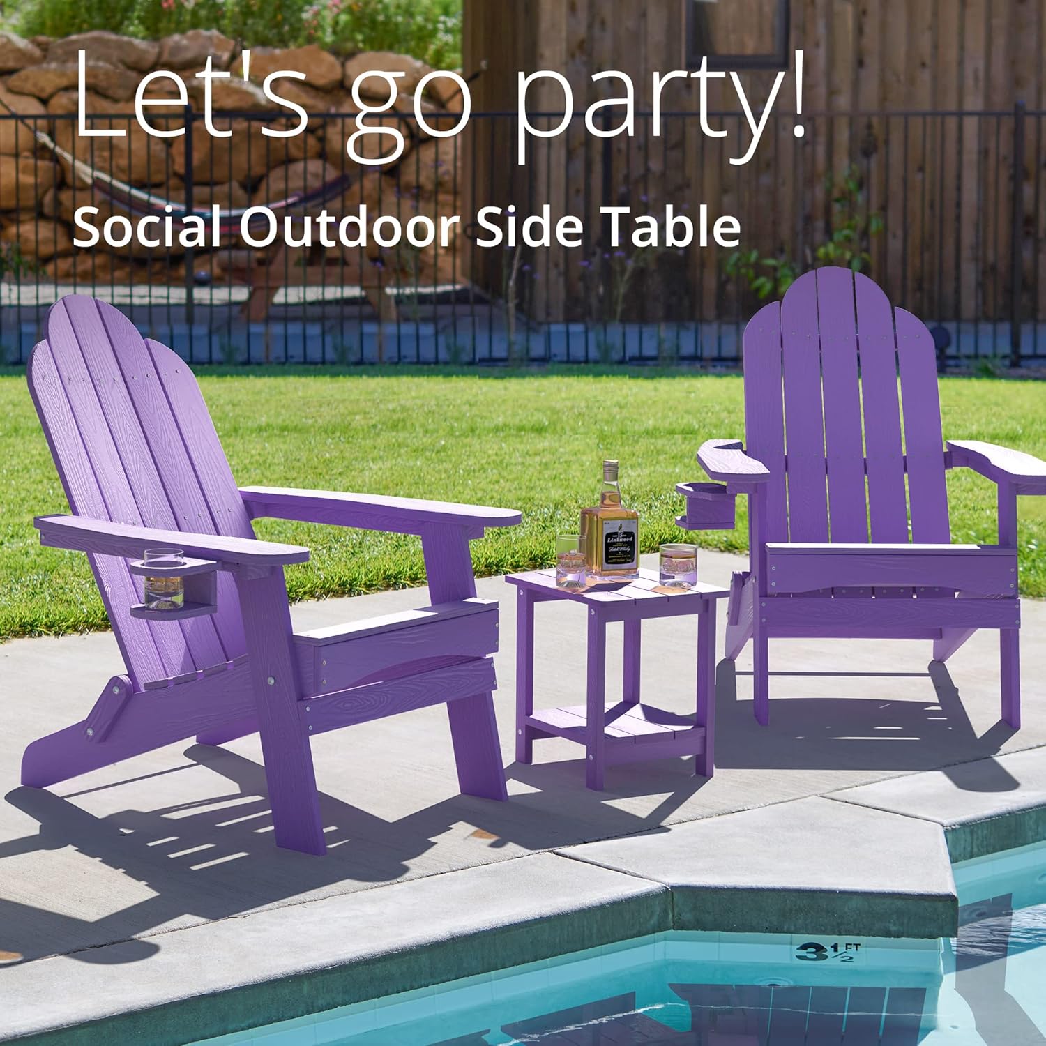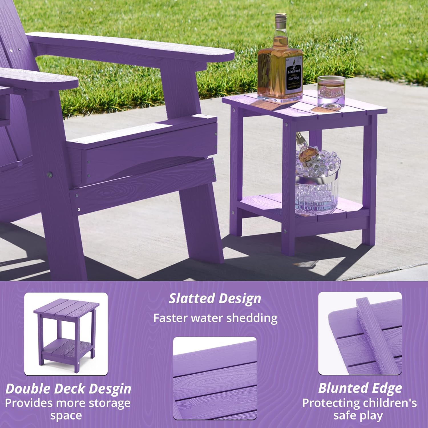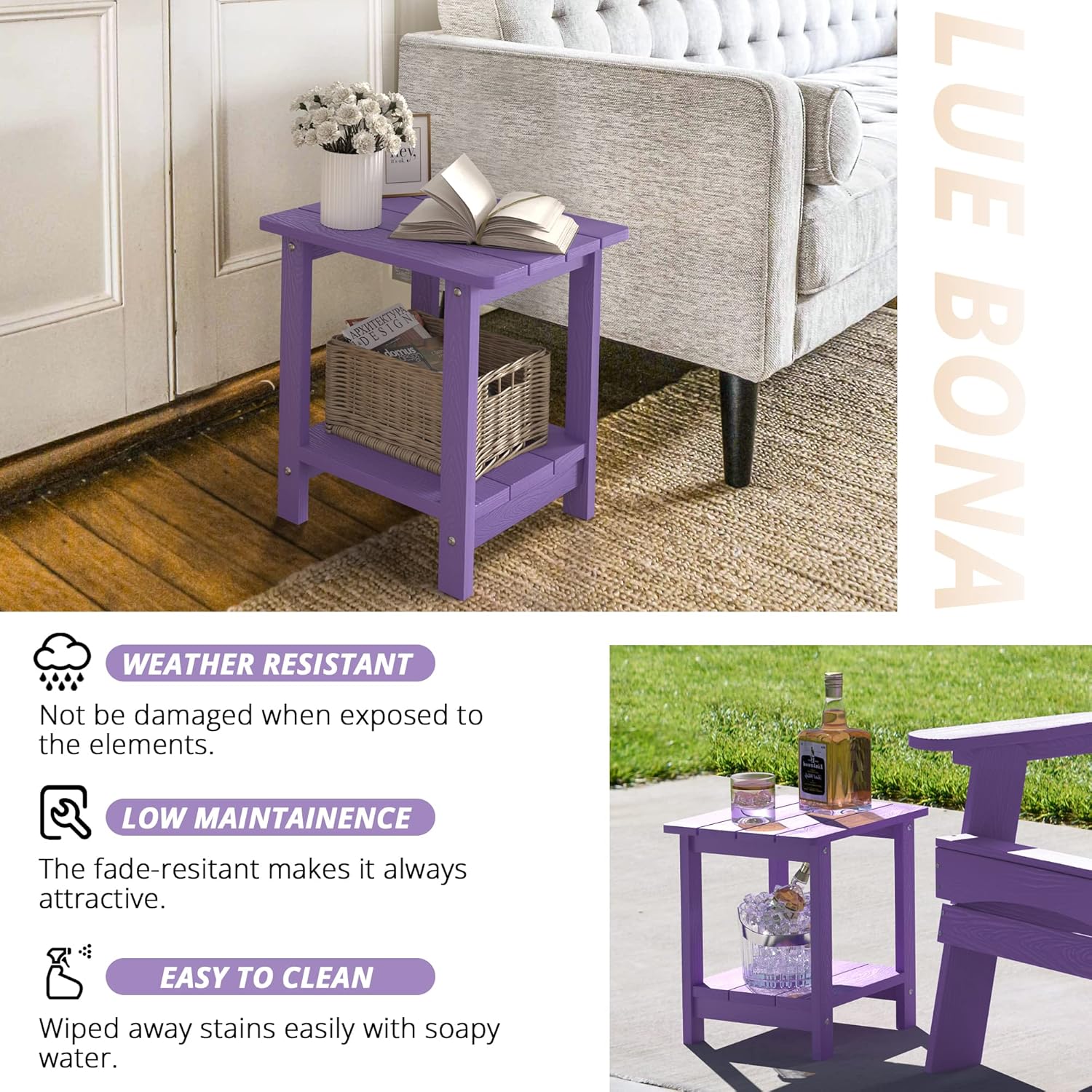 LUE BONA Adirondack Outdoor Side Table, 2-Tier Purple HDPS Patio End Table Weather Resistant, Morden Side Table for Patio, Pool, Porch