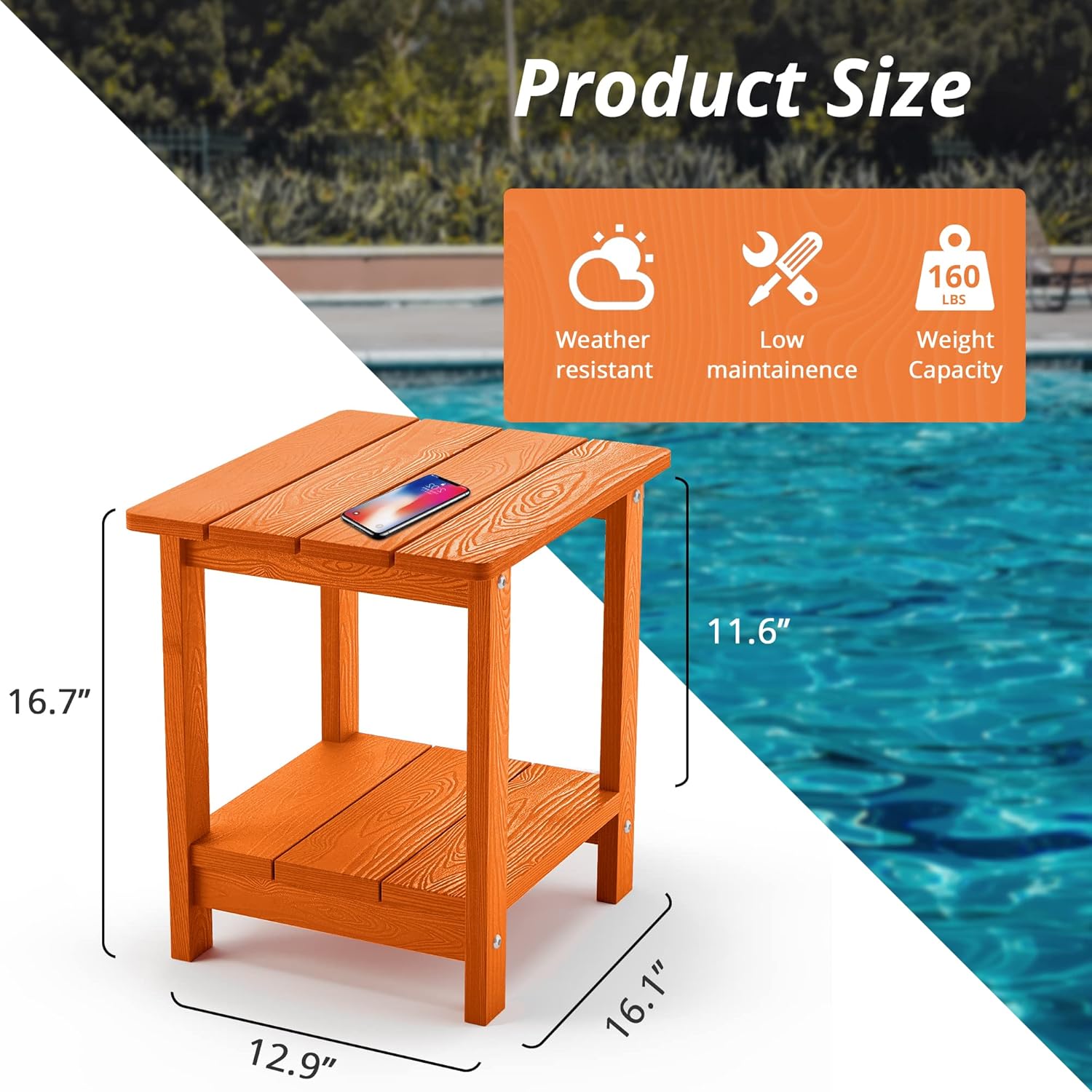 LUE BONA Adirondack Outdoor Side Table, 2-Tier Orange HDPS Patio End Table Weather Resistant, Morden Side Table for Patio, Pool, Porch