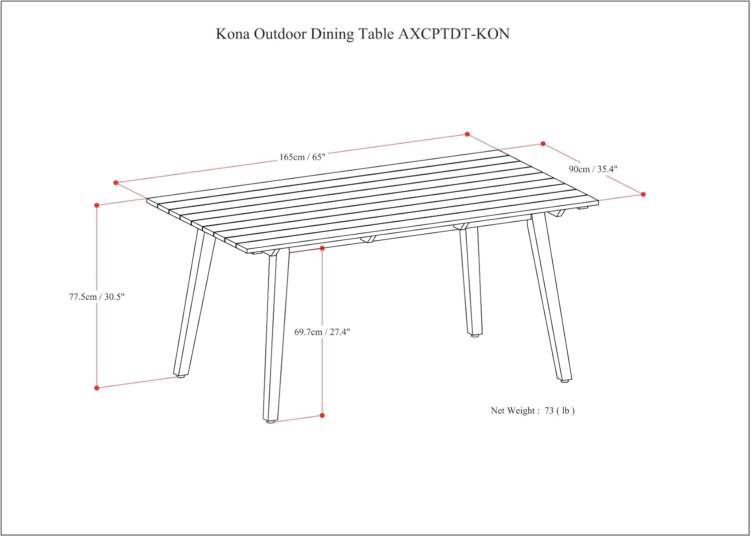 - PATIO DINING TABLE: Contemporary-style, solid wood dining table for outdoors, measuring 35.4" D x 56.9" W x 30.5" H and supporting up to 165 lbs