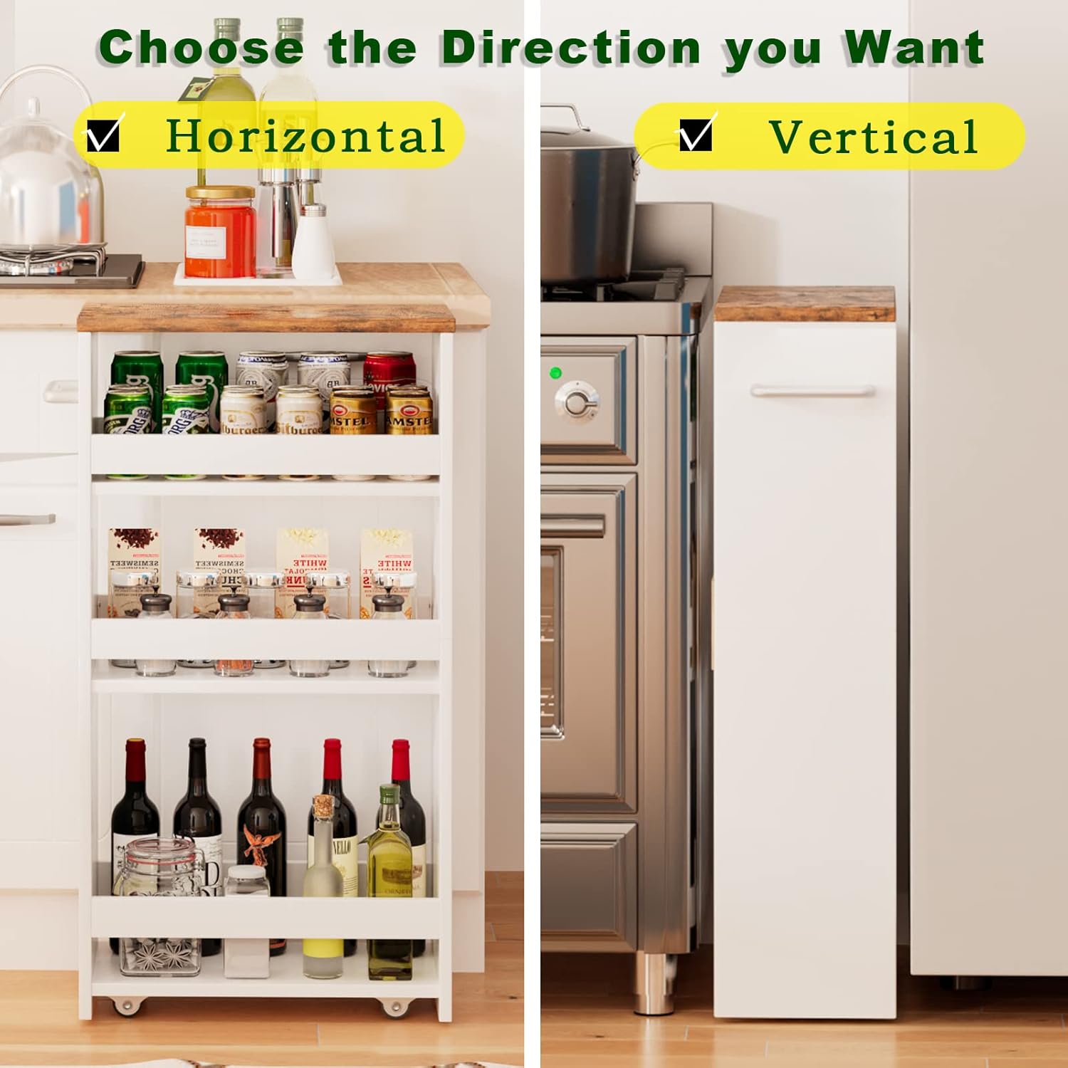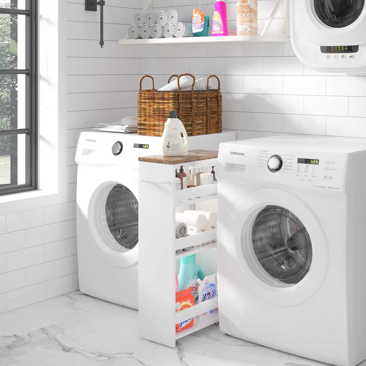 - 【Narrow Spaces Storage Design】This 4-tier storage cart is 7.9 inches wide and has plenty of storage space. It has 4 smooth wheels and 1 convenient handle. Can be used in closets, kitchens, bathrooms, garages, laundry rooms, offices, or washing machines and dryers.