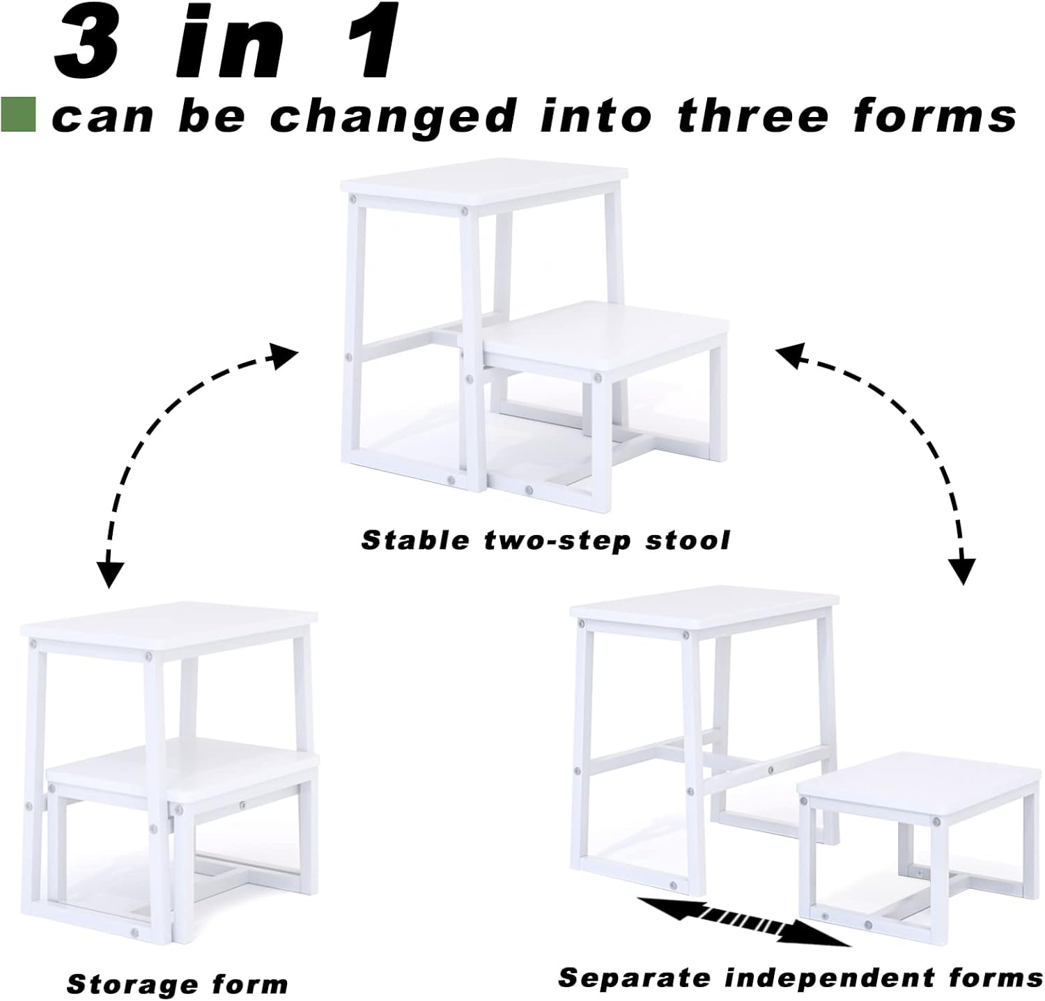 - 【3 in 1&well designed】iTsst step stool can change three forms.①Solid 2-step stool ② Small stool can be stored underneath the high stool ③ Can be split into two stools for separate use.