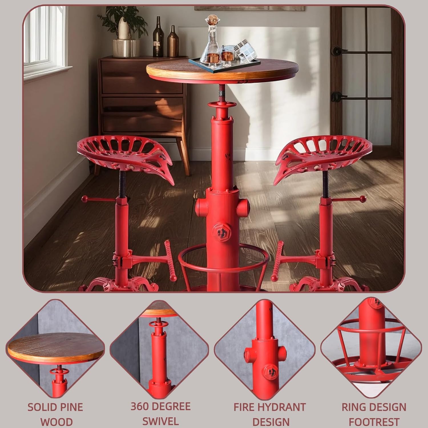 Vintage 38.6-44.4inch Height Adjustable Bar Table Industrial Fire Hydrant Design Pub Tables Farmhouse Cafe Cocktail Desk Rustic Bistro Table Swivel Wooden Top